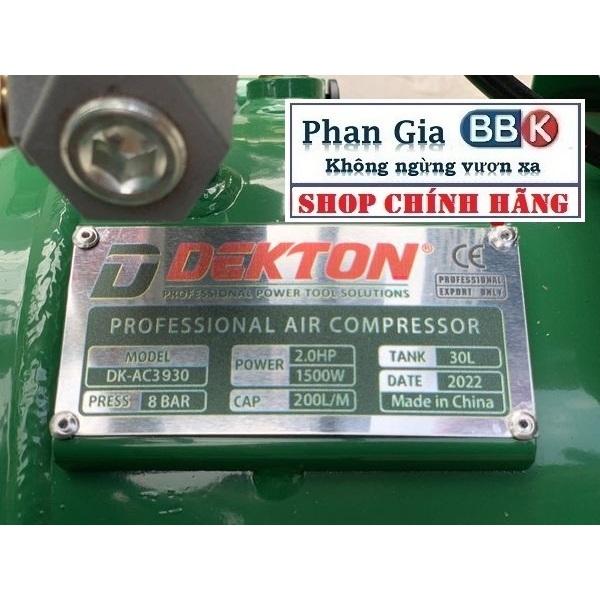 THÔNG SỐ KỸ THUẬT: Máy Nén Khí Giảm Âm Không Dầu 2.0HP / DK-AC3930 / Thể Tích 30L + Thương hiệu: DEKTON + Điện Áp :220v/50Hz + Công Suất 2.0Hp / 1500W + Tốc Motor