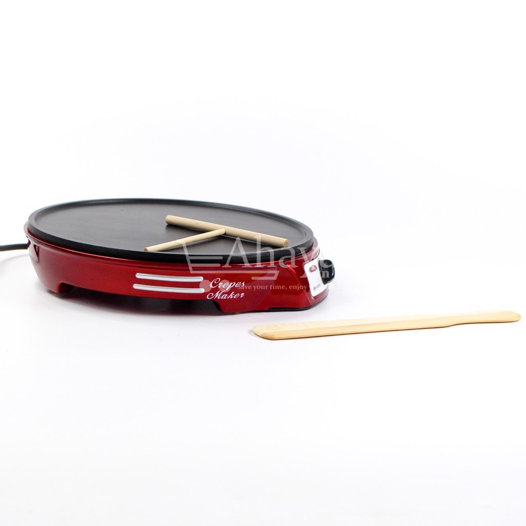 - Đường kính 30cm, cao 6cm Máy làm bánh crepe Ariete được thiết kế với một đĩa phẳng đơn giản để chế biến bánh crepe, bánh kếp hoặc bánh ngô một cách dễ dàng. Động cơ 1000 watt mạnh mẽ của nó sẽ làm cho bữa ăn nhẹ ngon miệng của bạn sẵn sàng ngay lập tức. Làm bánh crepe của bạn một cách dễ dàng tại nhà Máy làm bánh crepe Ariete đi kèm với 2 dao trộn bằng gỗ giúp bạn dễ dàng hơn trong thời gian nấu nướng. Sử dụng các công thức này để chuẩn bị và làm món bánh crepe yêu thích của bạn trong vài phút. Tấm chống dính Đĩa chống dính trong máy làm bánh crepe Ariete ngăn không cho các hạt thức ăn của bạn bị dính. Ngoài ra, nó sẽ rút ngắn thời gian làm sạch. Thưởng thức bữa ăn nhẹ ngon miệng của bạn với những lo lắng sau khi chuẩn bị tối thiểu.
