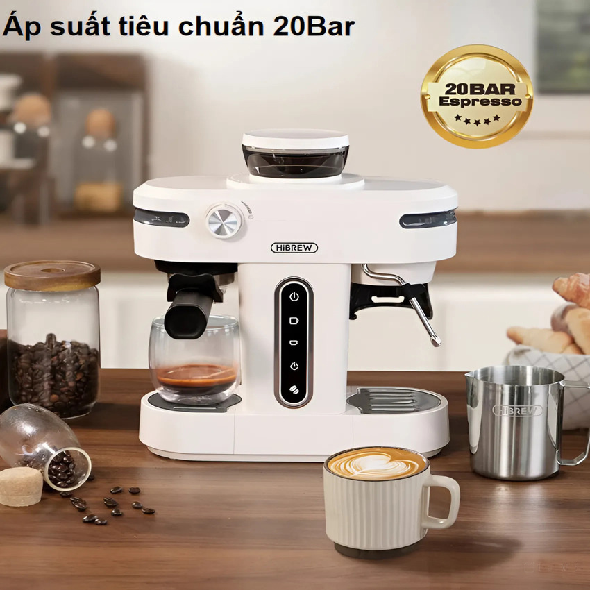 Máy pha và xay cà phê bán tự động 3 trong 1 Espresso, Cappuccino, Latte thương hiệu Mỹ cao cấp HiBREW H20 - Công suất 1500W 20bar - Hàng chính hãng Máy pha cà phê