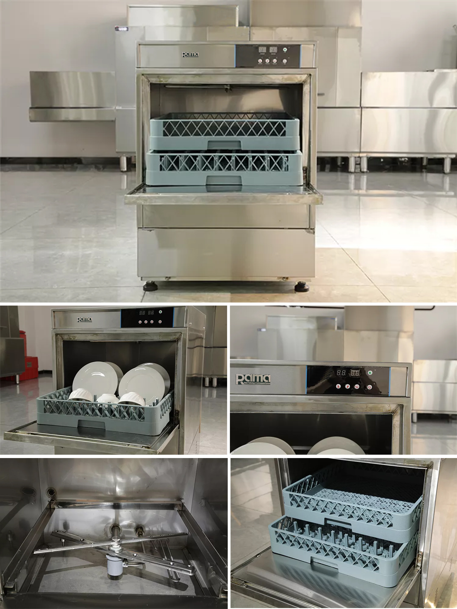 Máy rửa rát nhà hàng là một thiết bị vô cùng hữu ích  nên được sử dụng khá rộng rãi trên thị tường hiện nay. Với các nhà hàng có lượng thực khách ra vào đông, việc rửa chén bát thủ công cần huy động số lượng lớn nhân công, gây tốn kém chi phí mà không thể đảm bảo tuyệt đối được hiệu quả khi làm sạch. Hiểu được vấn đề đó, Rama Việt Nam đã cho ra đời dòng máy rửa bát nhà hàng Rama RC1200 với nhiều ưu điểm vượt trội đáp ứng nhu cầu làm sạch chén đĩa cho hầu hết các nhà hàng hiện nay.   Thiết kế chắc chắn, gọn nhẹ Máy rửa bát nhà hàng Rama RC12000 sở hữu kiểu dáng đơn giản, thiết kế hình khối chữ nhật cứng cáp với kích thước lên tới  600680850 mm, kích thước giỏ đựng đồ 500*400 mm. Vỏ máy làm từ chất liệu cao cấp không gỉ. Kết cấu máy gọn gàng giúp dễ dàng di chuyển và bố trí ở trong không gian nhà hàng. Công nghệ gia nhiệt giúp diệt khuẩn, khử mùi hiệu quả Với mức nhiệt độ dưới 40 độ C là môi trường không đủ điều kiện để tiêu diệt vi khuẩn. Trong khi đó máy rửa bát nhà hàng RC12000 có mức gia nhiệt tối đa lên tới 90 độ C, vượt ngưỡng tiêu diệt ci khuẩn tiêu chuẩn (60 độ C). Do đó máy có khả năng tiêu diệt và làm bất hoạt các loại vi khuẩn virus có trên bề mặt chén đĩa, khử các loại mùi tanh hôi từ thức ăn hiệu quả. Ngoài ra, nhiệt độ còn là yếu tố thúc đẩy việc làm sạch, dưới tác động của nhiệt độ, các loại vết bẩn, dầu mỡ có thể được làm sạch dễ dàng mà không cần sự hỗ trợ của hoá chất tẩy rửa. Hoạt động êm ái, hạn chế tiếng ồn Máy rửa bát nhà hàng Rama RC12000 với kết cấu dạng tủ kín cùng với động cơ hiện đại. Giúp nâng cao hiệu suất làm sạch đồng thời giảm thiểu tiếng ồn cho máy. Giúp làm giảm tạp âm gây ảnh hưởng nhân công làm việc trong bếp. Tiết kiệm thời gian và chi phí cho nhà hàng Với máy rửa bát nhà hàng RC12000, việc làm sạch được diễn ra hoàn toàn tự động, không tiêu tốn quá nhiều nhân công giống như các phương pháp làm sạch thủ công. Đồng thời máy có thể xử lý được số lượng lớn bát đĩa chỉ với một lần rửa. Những điều này giúp cho nhà hàng tiết kiệm được tối đa thời gian cũng như các chi phí về nhân công, điện, nước. THÔNG SỐ KỸ THUẬT