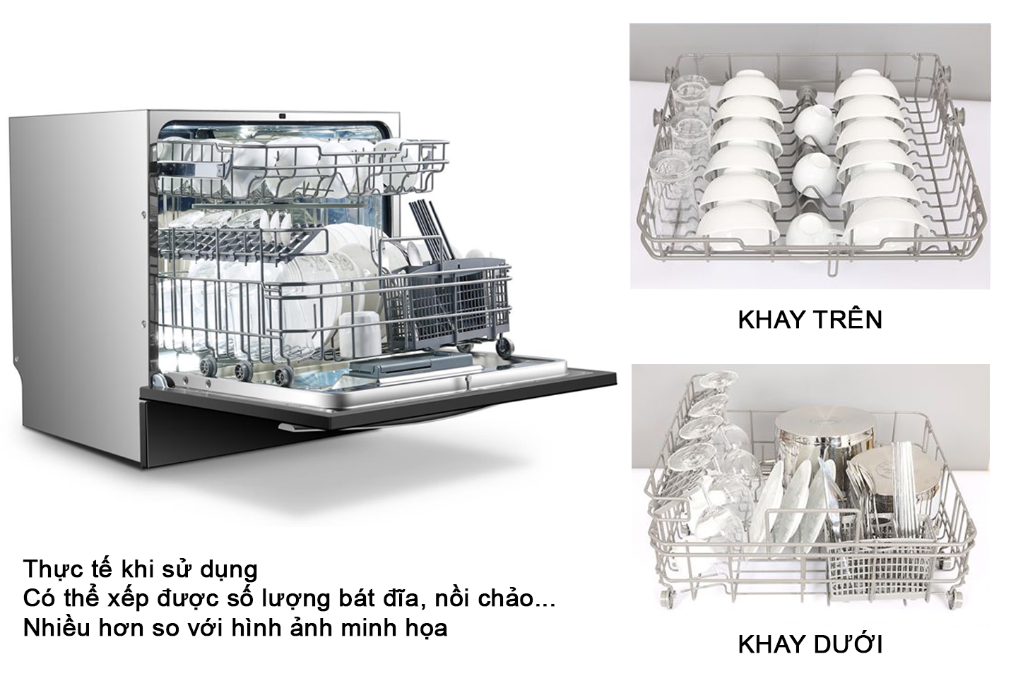 - Sức chứa 08 bộ đồ ăn Châu Âu