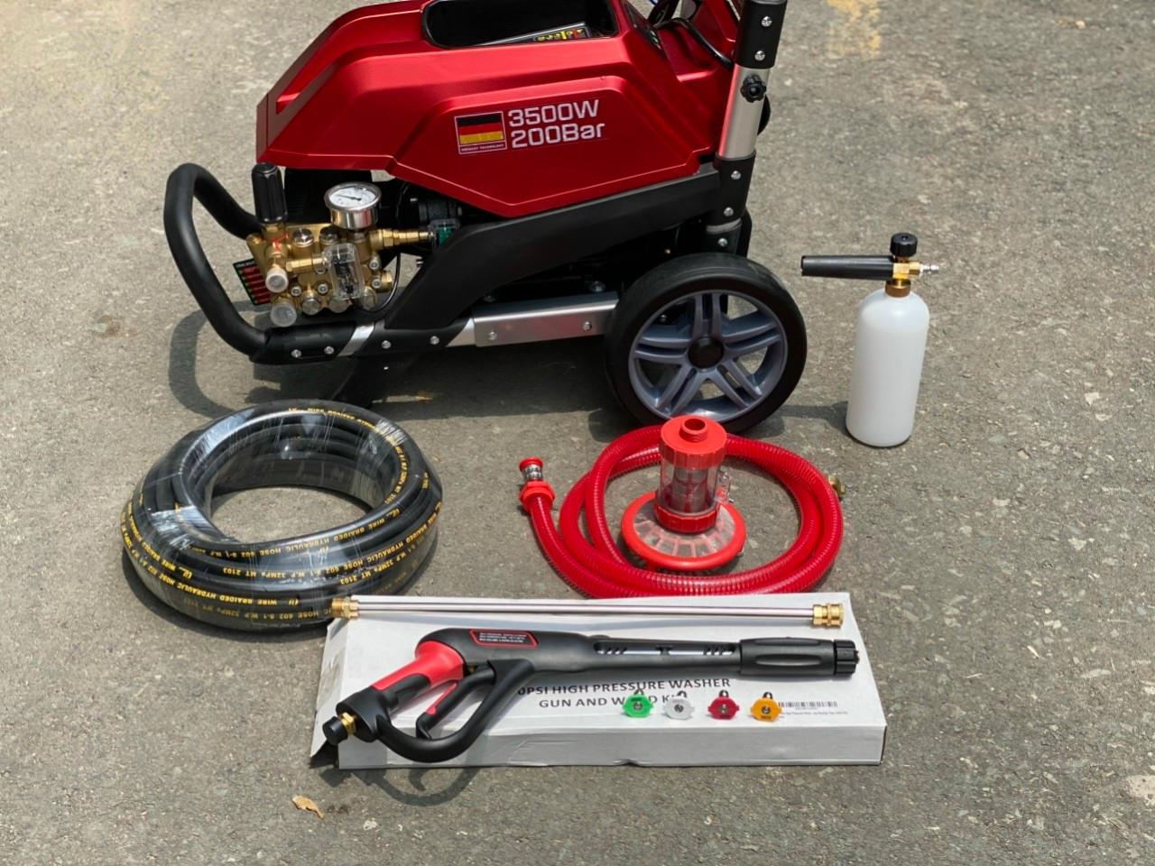 Máy rửa xe Hukan HK-CWM3000 được thiết kế với hệ thống bơm áp suất cao và các bộ phận phun nước, giúp loại bỏ bụi bẩn, dầu mỡ và các vết bẩn khó loại bỏ