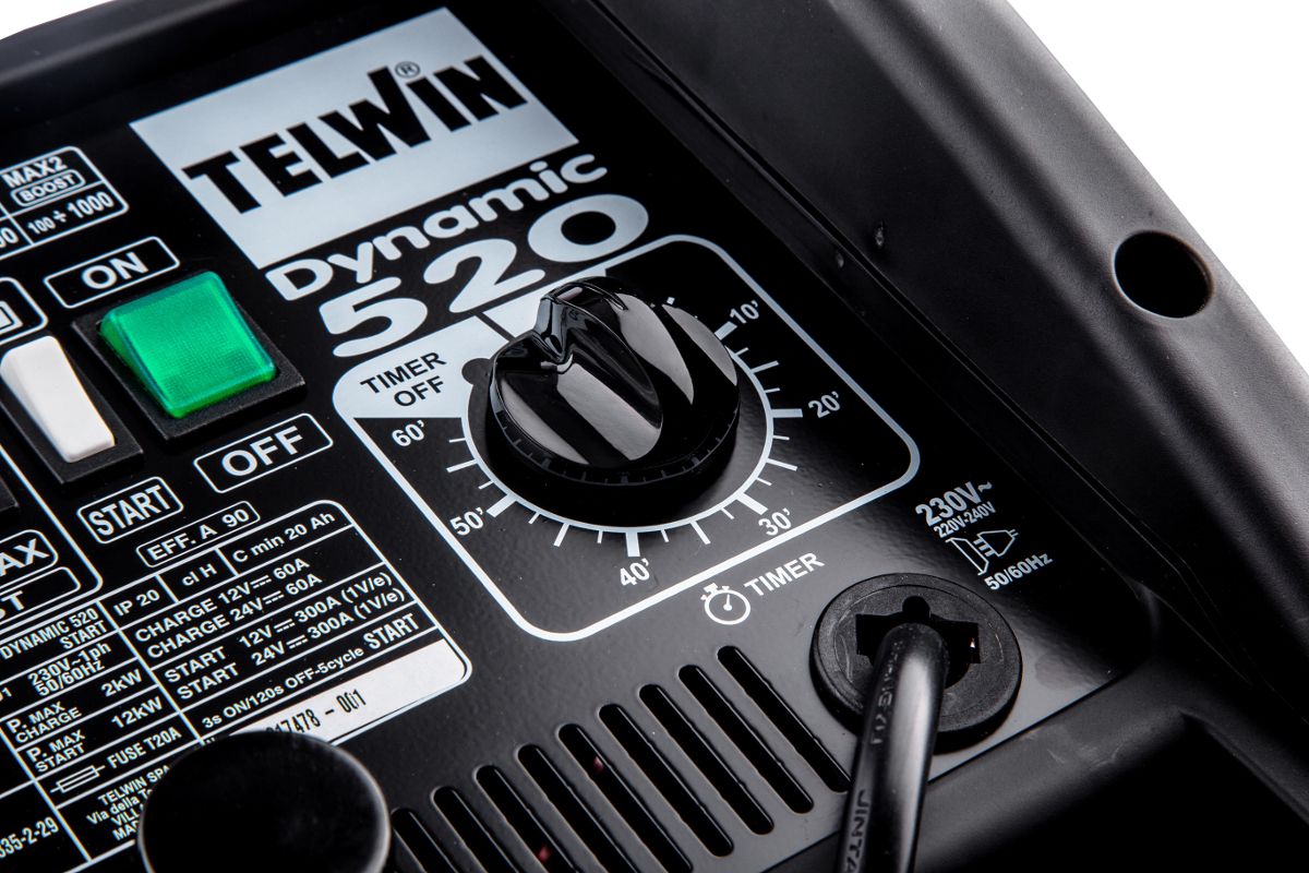 Máy Sạc & Khởi Động Ắc Quy TELWIN DYNAMIC 520 START là bộ sạc dành cho bình ắc quy acid chì với điện áp 12V/24V. Thích hợp để sạc ắc quy cho ô tô con, xe tải và xe tải nhẹ. Các tính năng của máy sạc & khởi động bình ắc quy TELWIN DYNAMIC 520 START: