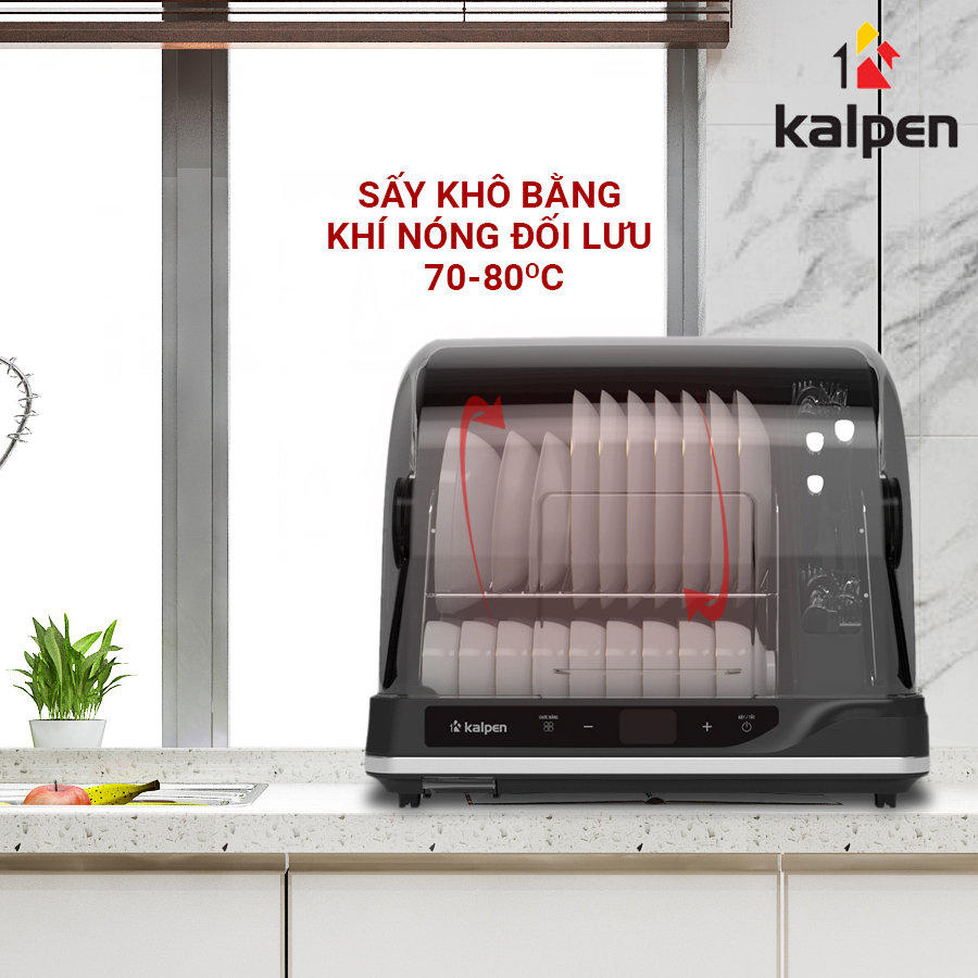 - Máy sấy bát là một thiết bị nhà bếp hữu ích được sử dụng ngày càng rộng rãi và phổ biến. Không chỉ có sức năng sấy khô bát đĩa mà còn có chức năng diệt trừ vi khuẩn nấm mốc. Máy sấy bát góp phần chăm sóc sức khỏe gia đình và giúp cho không gian bếp hiện đại thêm tiện nghi, sang trọng. Dung tích 58L với buồng sấy rộng rãi có thể đáp ứng được tốt cho nhu cầu sử dụng chén bát, đĩa…của một gia đình 6-8 thành viên. Khay máy sấy bát Kalpen DD99 có 2 tầng: tầng dưới có 2 hàng có thể để tối đa 18 bát nhỏ ăn cơm, tầng trên có thể để chén bát to hoặc đĩa. Ngoài ra có khay riêng để cài dao chặt, dao thái, dao cài hoa quả, 1 ống đựng đũa, 1 ống đựng thìa nĩa nhỏ, 1 ống đựng thìa lớn, muôi canh.