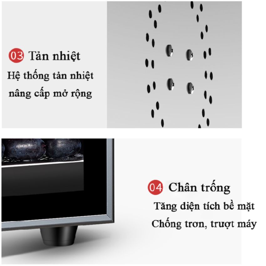 - Hàng loạt cải tiến mới so với các thế hệ cũ đáp ứng nhu cầu người sử dụng Máy sấy thực phẩm được trang bị bộ phận gia nhiệt kết hợp với quạt thông gió kép giúp tăng hiệu quả sấy