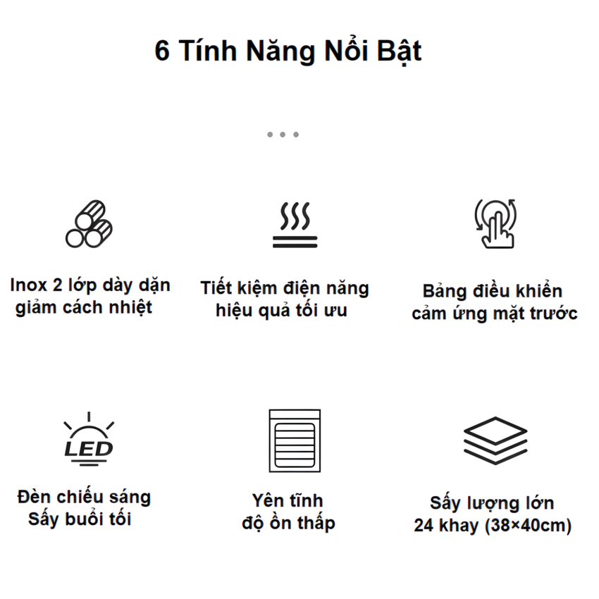 - Hệ thống nhiệt: Xoay vòng tự động 360 độ quanh đều 24 khay
