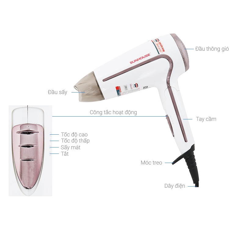 MÁY SẤY TÓC SUNHOUSE 1800W ĐẲNG CẤP CHĂM SÓC TÓC TẠI NHÀ | Mua hàng 0947.966.229 (zalo)