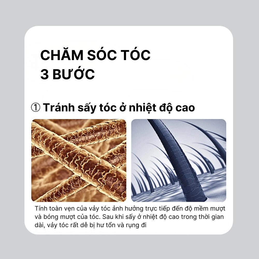 Động cơ không chổi than tốc độ cao 110.000 rpm, tốc độ gió 65m/s, làm khô tóc ngắn chỉ trong 40 giây Cảm biến kiểm soát nhiệt thông minh NTC, kiểm soát nhiệt độ 100