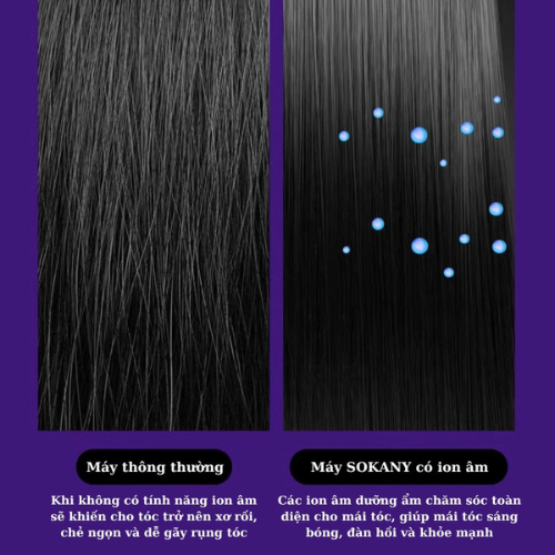 - Máy sấy SOKANY còn có các ion âm dưỡng ẩm chăm sóc toàn diện cho mái tóc, giúp mái tóc sáng bóng, đàn hồi và khoẻ mạnh.