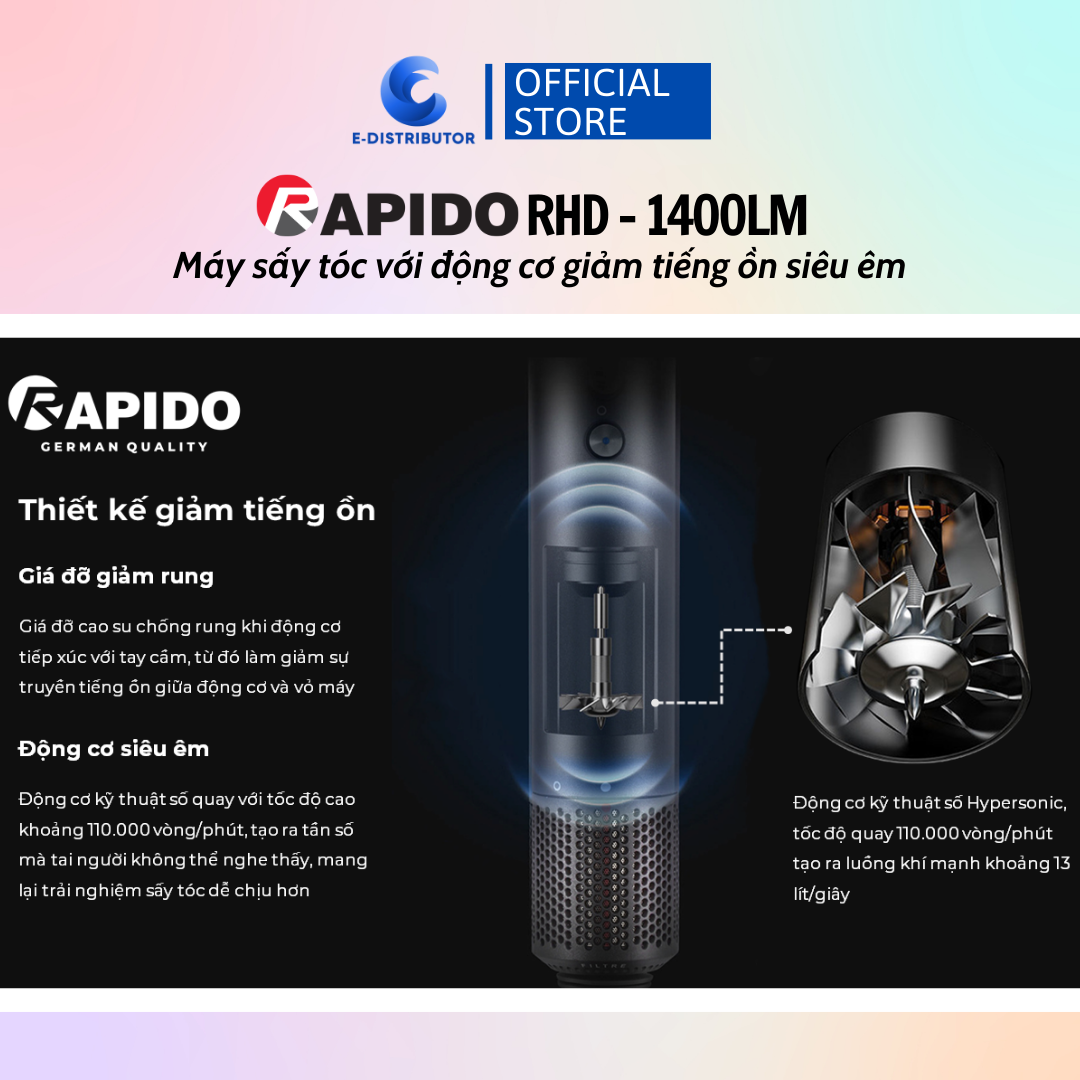 ✨Máy sấy tóc Rapido RHD – 1400LM - Hàng chính hãng - Bảo Hành 12 Tháng