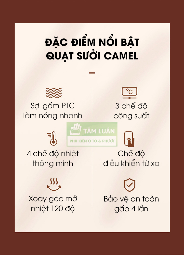 Mua tại TiktokMáy sưởi gốm Camel là sản phẩm thuộc top đầu thương hiệu về dòng sản phẩm máy sưởi tại thị trường TQ. Đây là sản phẩm nội địa TQ được chúng tôi phân phối chính hãng, bả.o hà.nh trực tiếp bởi Tâm Luân