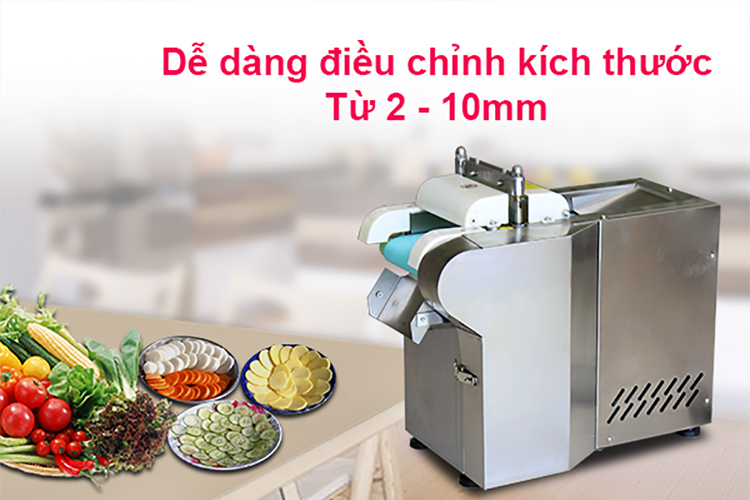 Với lưỡi dao sắc bén, máy thái lát dứt khoát, nhanh chóng. Thành phẩn thu được đồng đều, đẹp mắt, lát cắt phẳng đẹp, không bị dập nát. Đặc biệt bạn có thể điều chỉnh tốc độ băng tải để điều chỉnh kích thước đầu ra từ 2 - 10mm.