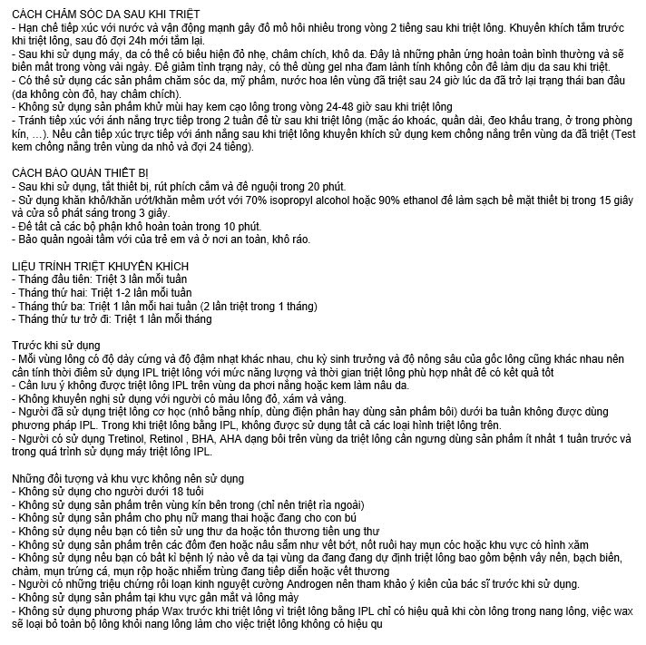 - Tốc độ phát xung siêu nhanh 0,25 giây: Chỉ mất 10 phút để triệt lông toàn thân