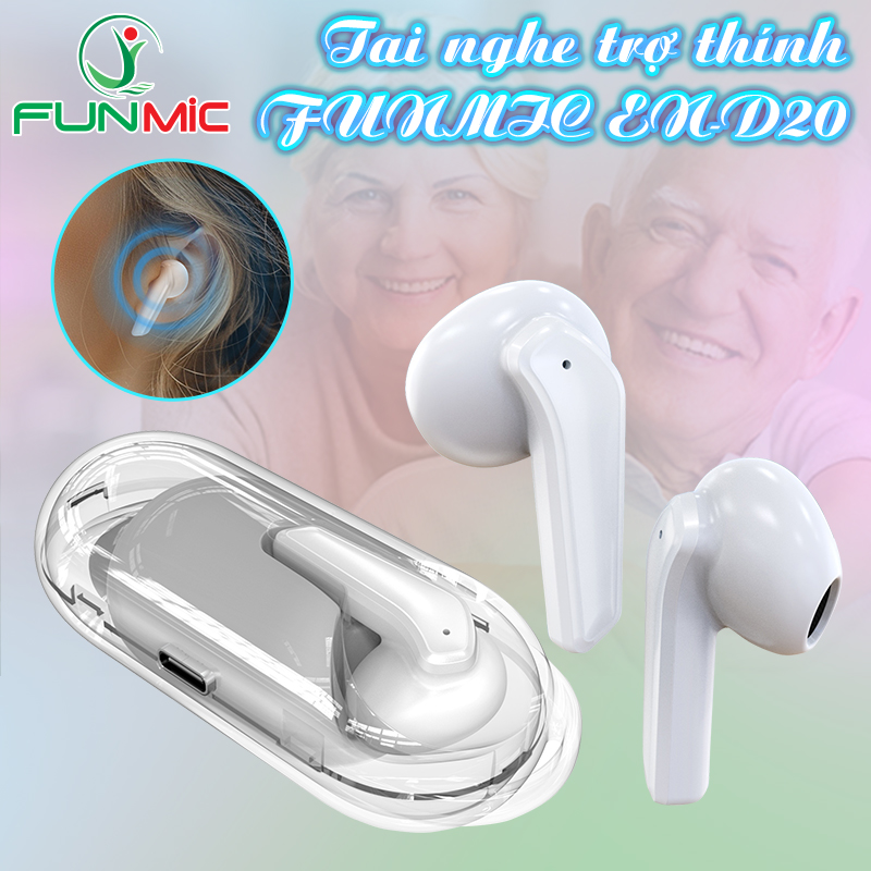 Tai nghe trợ thính không dây FUNMIC EN-D20 thiết bị trợ thính cho người già và người cao tuổi - Công nghệ lọc âm thanh đỉnh cao, kết hợp khuyết đại âm thanh giúp người