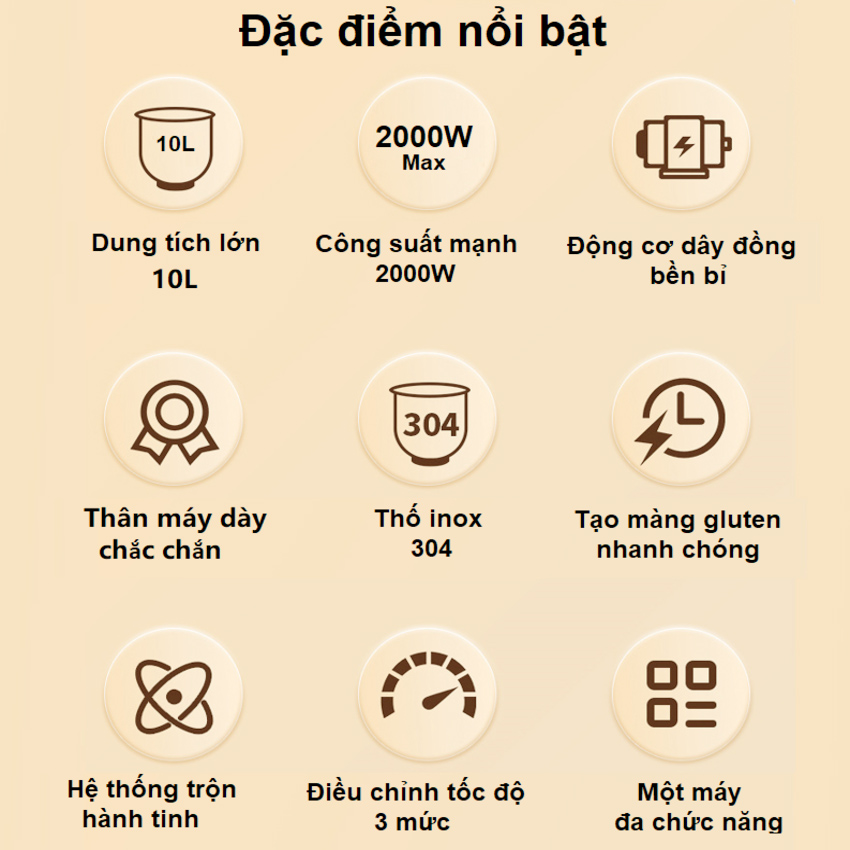 - Với công suất 2000W cùng động cơ đồng nguyên chất, không chổi than bền bỉ, máy trộn bột Septree B10SS xay nhuyễn mọi nguyên liệu, từ bột khô đến các loại thực phẩm đa dạng.