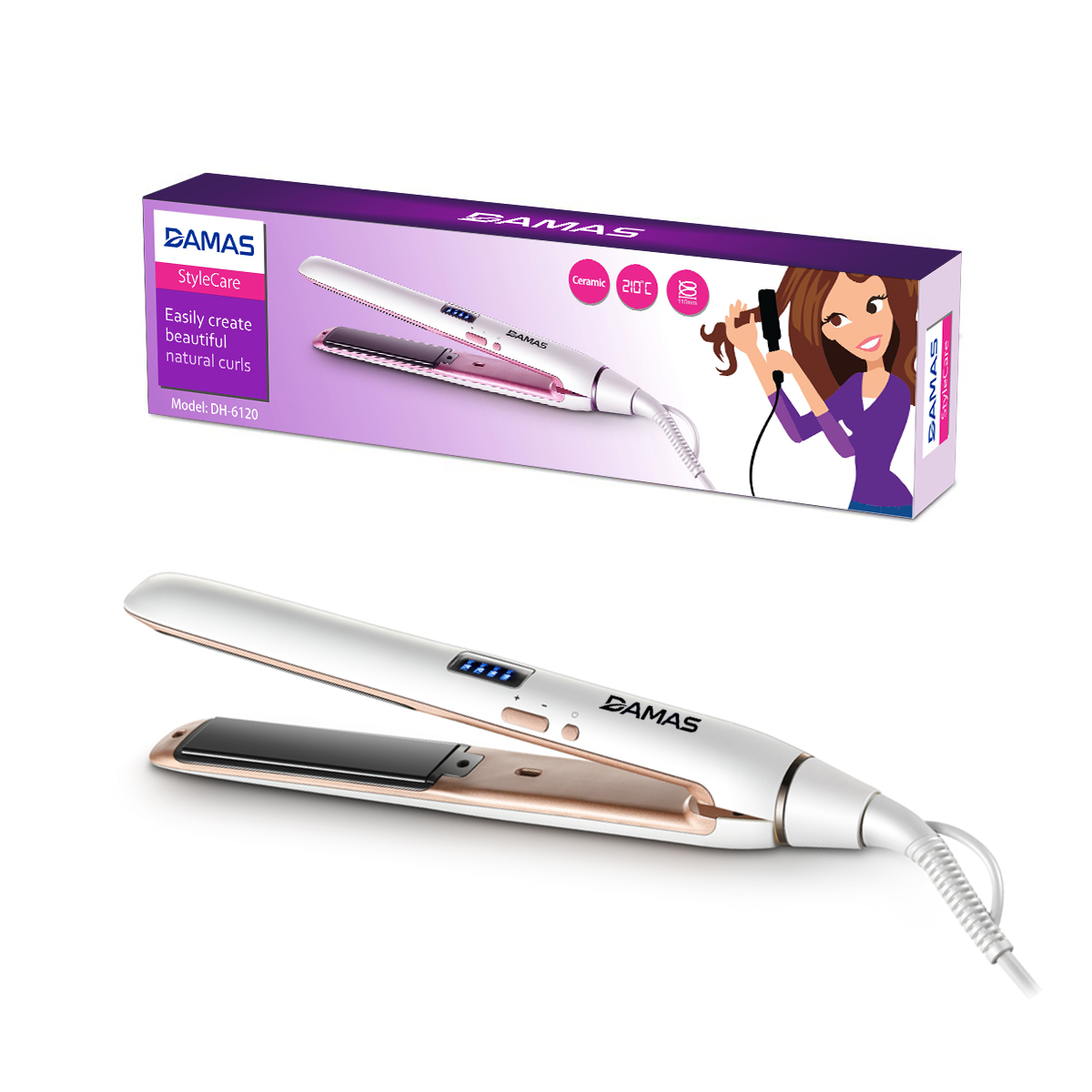 ✨Máy Uốn Tóc, Máy Ép Tóc, Duỗi Tóc Đa Năng Kiểu Hàn Quốc DAMAS DH6120 - Thiết kế với 4 mức nhiệt tùy chỉnh phù hợp với nhiều loại tóc khác nhau giúp duỗi thẳng, làm xoăn tóc chuẩn Salon ngay tại nhà mà không cần phải ra cửa tiệm - Hàng Chính Hãng