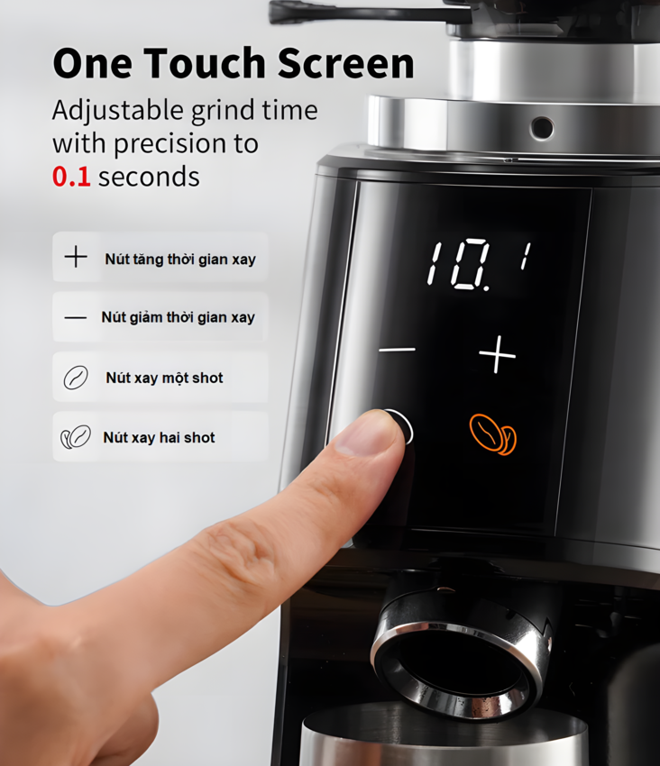 - Tích hợp hệ thống chống tĩnh điện Plasma: Giảm hiện tượng tĩnh điện trong bột cà phê (không bám dính hoặc văng tung)