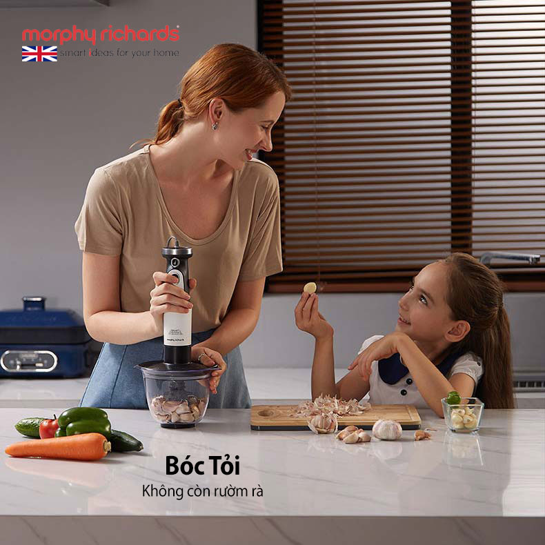 Máy xay cầm tay Morphy Richards MR6006, 4 trong 1, sinh tố, đánh trứng, bóc tỏi và xay thịt