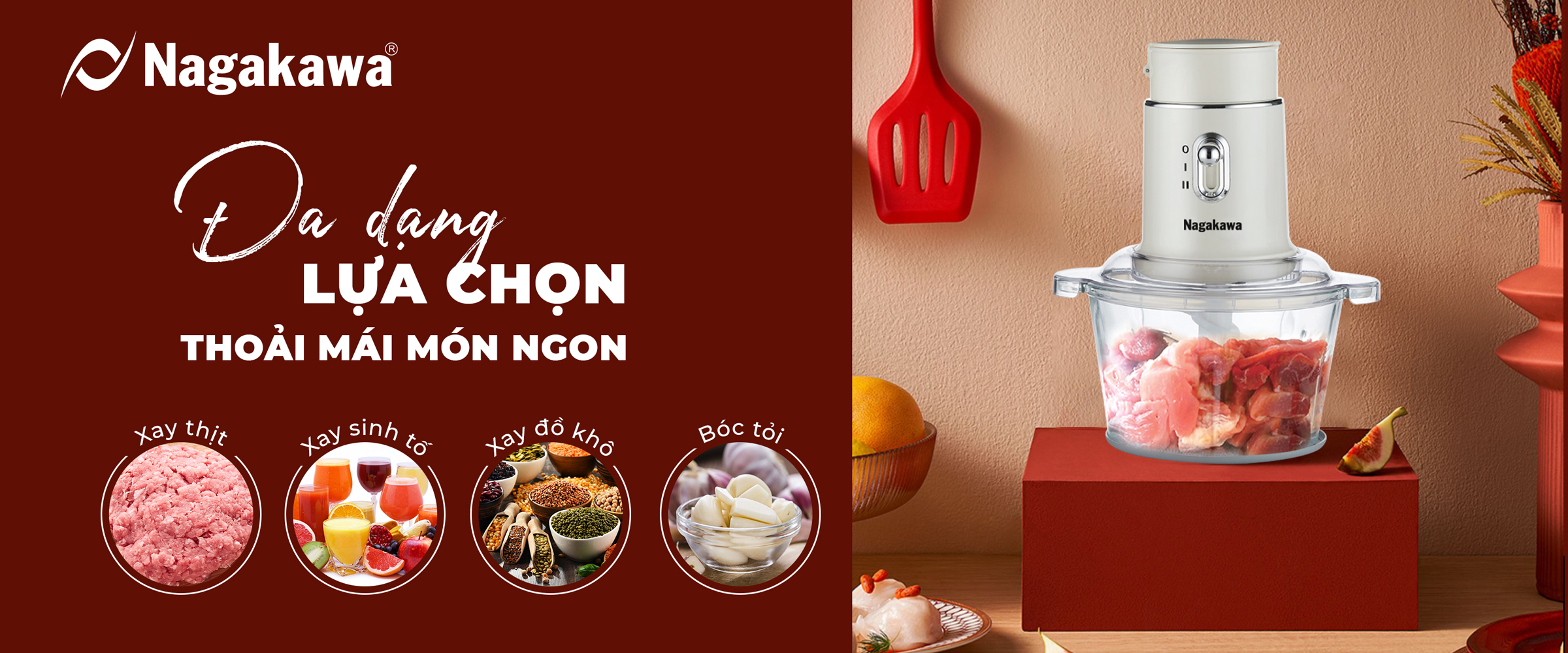 Để tạo nên những món ăn ngon, quá trình nấu nướng có thật nhiều công việc nhỏ nhặt, đó có thể là xay thịt, xay sinh tố, xay đồ khô, hay bóc tỏi. Hiểu được sự vất vả của người nội trợ, Nagakawa cho ra đời máy xay đa năng Nagakawa NAG0823. Sản phẩm tích hợp nhiều công năng giúp tiết kiệm thời gian nấu nướng và tối ưu đồ gia dụng trong bếp.