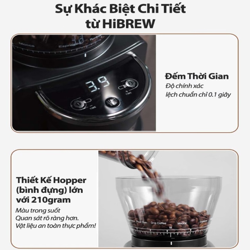 ✨Máy xay hạt cà phê tự động tích hợp 34 chế độ xay thương hiệu HiBREW G3 công suất 220W - Hàng Chính Hãng