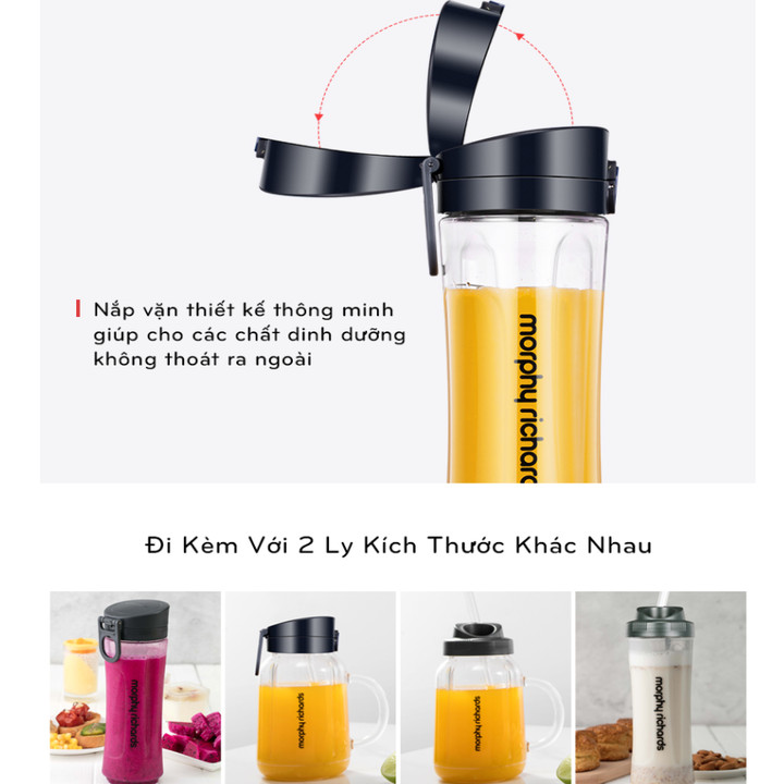 ✨Máy Xay Sinh Tố 2 Ly Cao Cấp Morphy Richards - Dung tích 600ml - Công suất 300W - Tốc độ xay 24000 RPM - Hàng Nhập Khẩu