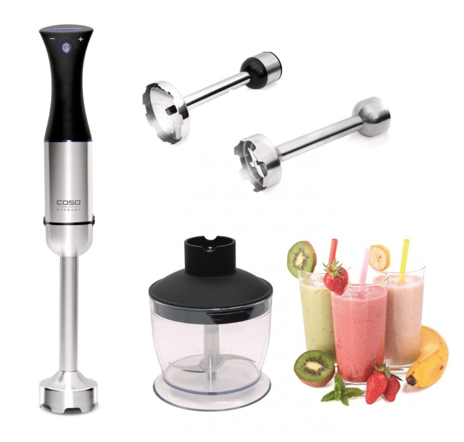 Mạnh mẽ, nhanh chóng và không gây nguy hiểm cho các ngón tay khi sử dụng, là dụng cụ làm bếp nhỏ gọn,thiết kế trang nhã, thanh lịch và nhỏ gọn. Máy xay thực phẩm cầm tay Caso giúp bạn có thể dễ dàng chuẩn bị bữa ăn chỉ với một tay, thay đổi tốc độ theo ý muốn mà không hề bị gián đoạn.