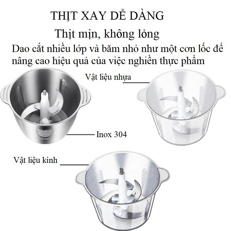- Chất liệu cao cấp, bền bỉ: Đặc biệt nắp của máy xay thịt được làm bằng chất liệu inox 304 cao cấp, chống va đập mạnh và đảm bảo an toàn cho sức khỏe. Lưỡi dao inox bền chắc, chống gỉ sét, không chứa độc tố gây hại cho sức khỏe. Lưỡi dao có độ bền cao, sắc bén nên có thể xay nhuyễn thực phẩm một cách dễ dàng, không gây nặng máy trong lúc vận hà"
