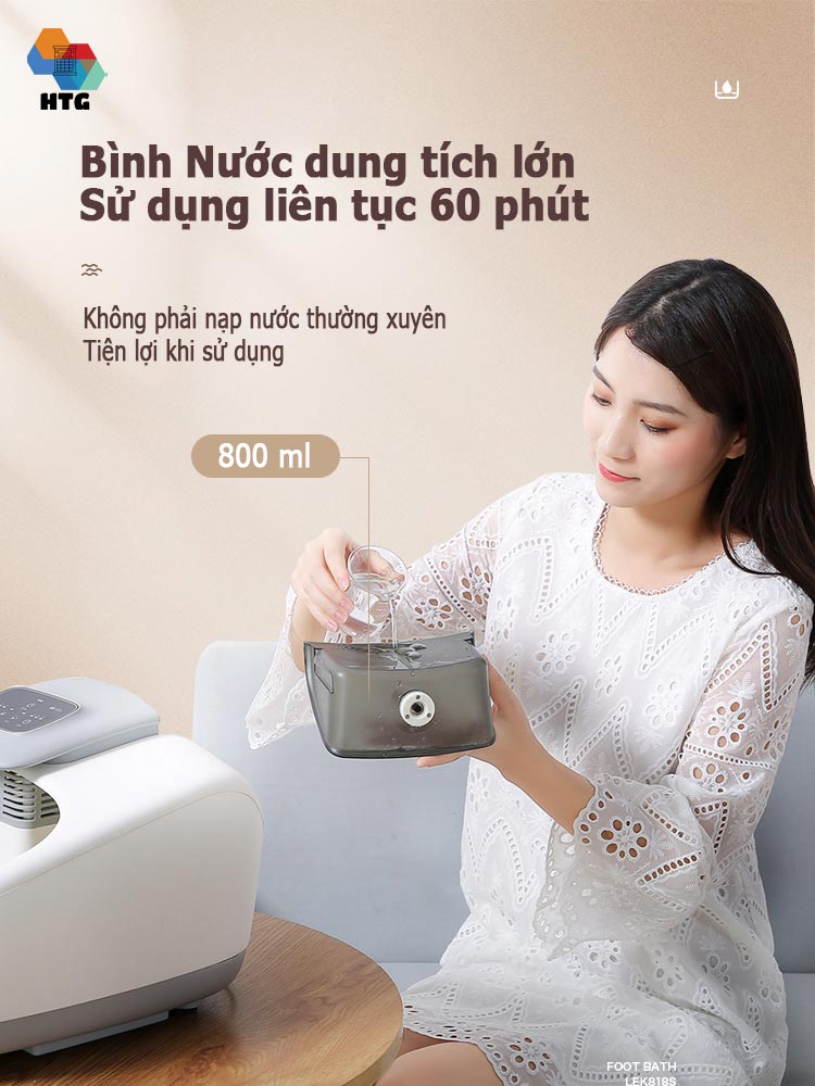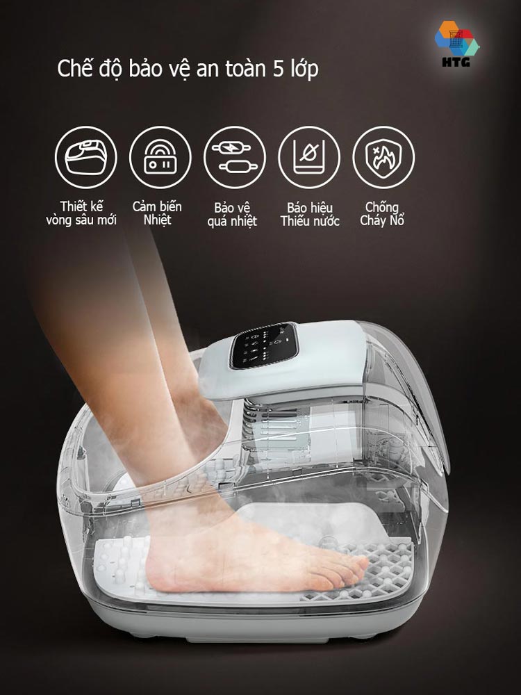 Làm nóng và duy trì nhiệt độ nước của máy từ 35˚C đến 48˚C (từ 95 đến 118 độ F) giúp đôi bàn chân dễ chịu, thư thái trong làn nước ấm Bồn ngâm chân