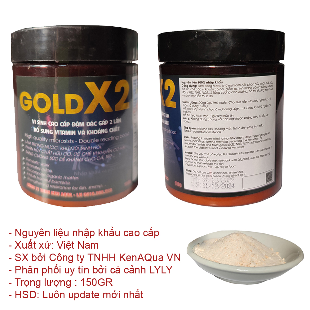 Men vi sinh Gold x2 150GR đậm đặc cao cấp, bổ sung Vitamin và khoáng chất, làm trong nước, khử tanh, phân hủy thức ăn dư thừa cá Ưu điểm men vi sinh GOLD X2 :