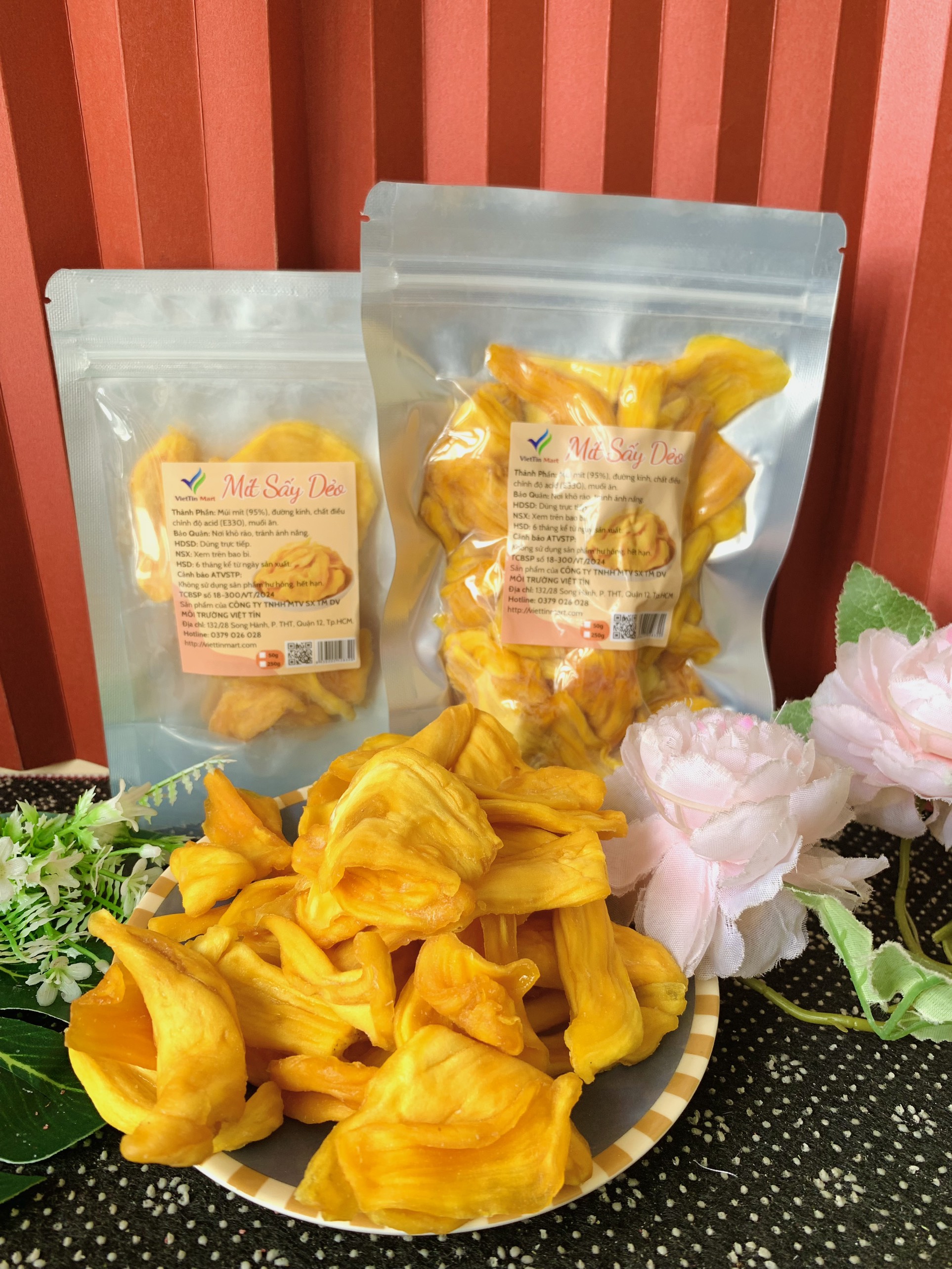 THÔNG TIN SẢN PHẨM Tên sản phẩm: Mít Sấy Dẻo Thơm Ngon VietTin Mart Thành Phần: 100% mít tươi sấy Thương hiệu: Viettin Mart Khối lượng: 50g/250g Quy cách đóng gói : Sản phẩm được