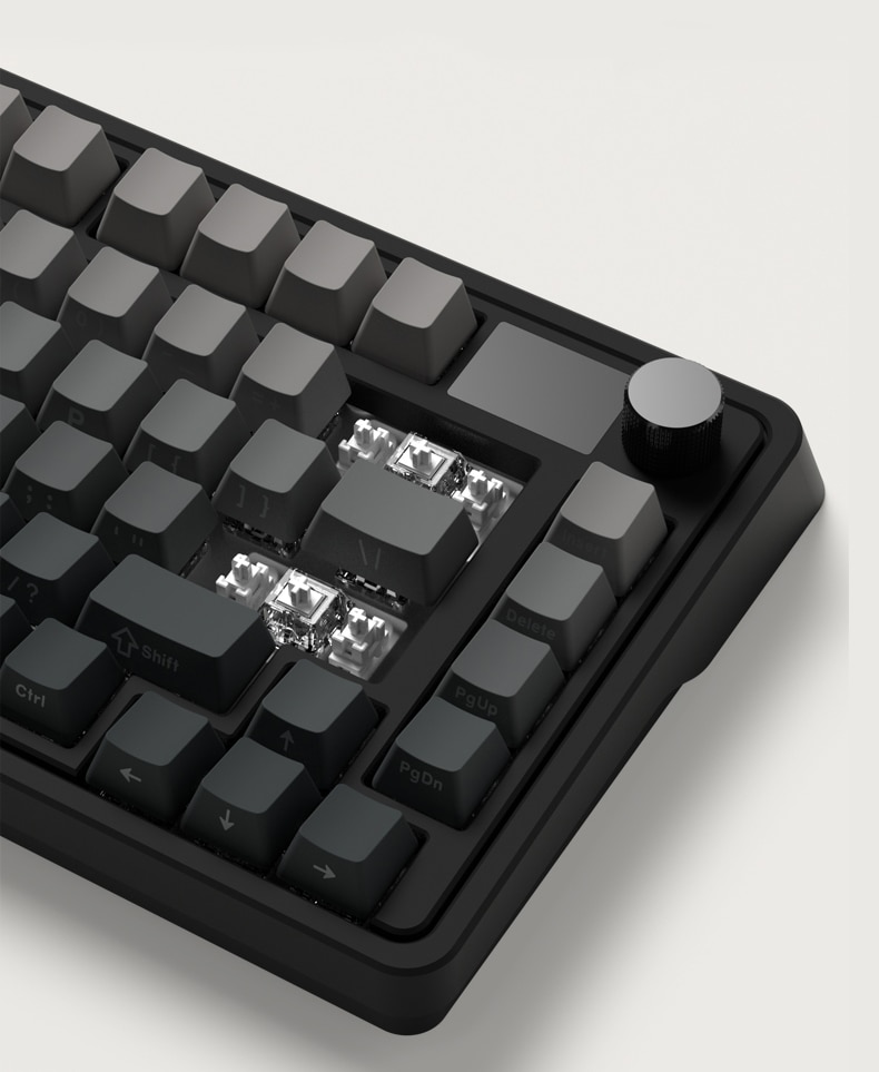 • Layout: 75%, (81 keys + 1 Màn hình + 1 Núm xoay)