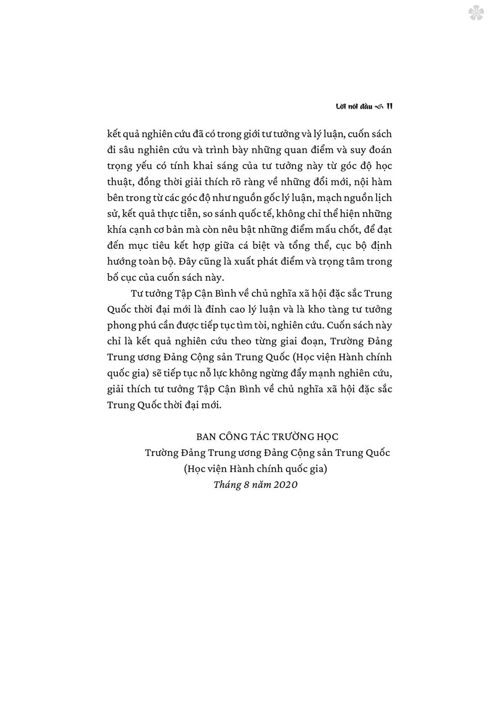 Cuốn sách do Trường Đảng Trung ương Đảng Cộng sản Trung Quốc (Học viện Hành chính quốc gia, Trung Quốc) phối hợp với Nhà xuất bản Nhân dân, Trung Quốc xuất bản năm 2020. Nhà xuất bản Chính trị quốc gia Sự thật tổ chức biên dịch, xuất bản nhằm cung cấp thêm tài liệu, giúp bạn đọc tìm hiểu rõ hơn những vấn đề, nội dung có liên quan trong tư tưởng Tập Cận Bình về chủ nghĩa xã hội đặc sắc Trung Quốc thời đại mới.