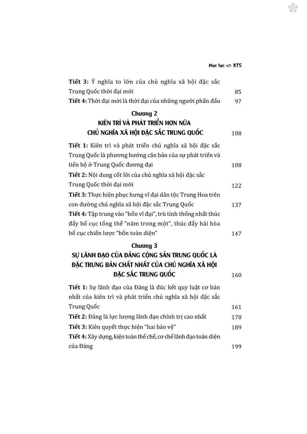 Ngoài phần giới thiệu và kết luận, cuốn sách gồm 15 chương, tập trung phân tích những vấn đề về quan điểm lý luận, phương châm, sách lược… trong tư tưởng Tập Cận Bình về chủ nghĩa xã hội đặc sắc Trung Quốc thời đại mới như kiên trì và phát triển hơn nữa chủ nghĩa xã hội đặc sắc Trung Quốc; kiên trì lập trường căn bản lấy nhân dân làm trung tâm; quan điểm phát triển mới về “đổi mới, hài hòa, xanh, mở cửa, cùng chia sẻ”; kiên trì đi sâu cải cách toàn diện và mở cửa toàn diện; xây dựng Trung Quốc thành cường quốc hiện đại hóa xã hội chủ nghĩa giàu mạnh, dân chủ, văn minh, hài hòa, tươi đẹp; thực hiện Giấc mơ Trung Quốc phục hưng vĩ đại dân tộc Trung Hoa…
