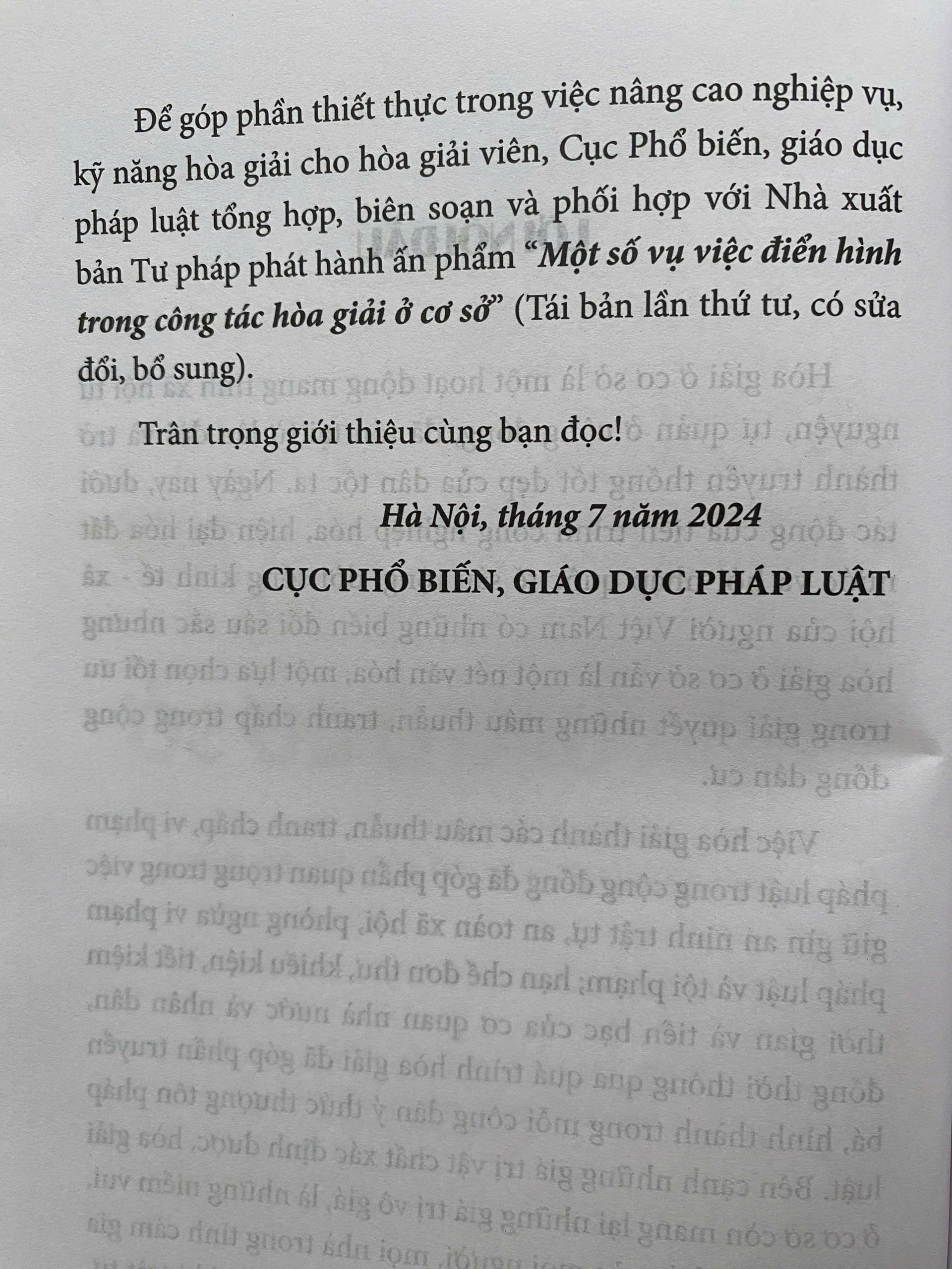 Việc hòa giải các mâu thuẫn, tranh chấp, vi phạm pháp luật trong cộng đồng đã góp phần quan trọng trong việc giữ gìn an ninh trật tự, an toàn xã hội, phòng ngừa vi phạm pháp luật và tội phạm; hạn chế đơn thư, khiếu kiện, tiết kiệm thời gian và tiền bạc của cơ quan nhà nước và nhân dân, đồng thời thông qua quá trình hòa giải đã góp phần truyền bá, hình thành trong mỗi công dân ý thức thượng tôn pháp luật....Luatvietbook xin trân trọng mời bạn tham khảo cuốn sách " MỘT SỐ VỤ VIỆC ĐIỂN HÌNH TRONG CÔNG TÁC HOÀ GIẢI Ở CƠ SỞ" Nội dung cuốn sách gồm các vụ việc như sau