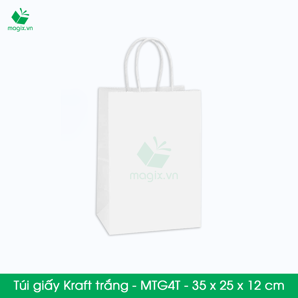Túi Giấy Kraft Trắng Sản phẩm được làm bằng giấy kraft trắng, bền về cơ học, dai, chống thấm tốt, thân thiện môi trường do có khả năng phân hủy sinh học nên được tái sinh