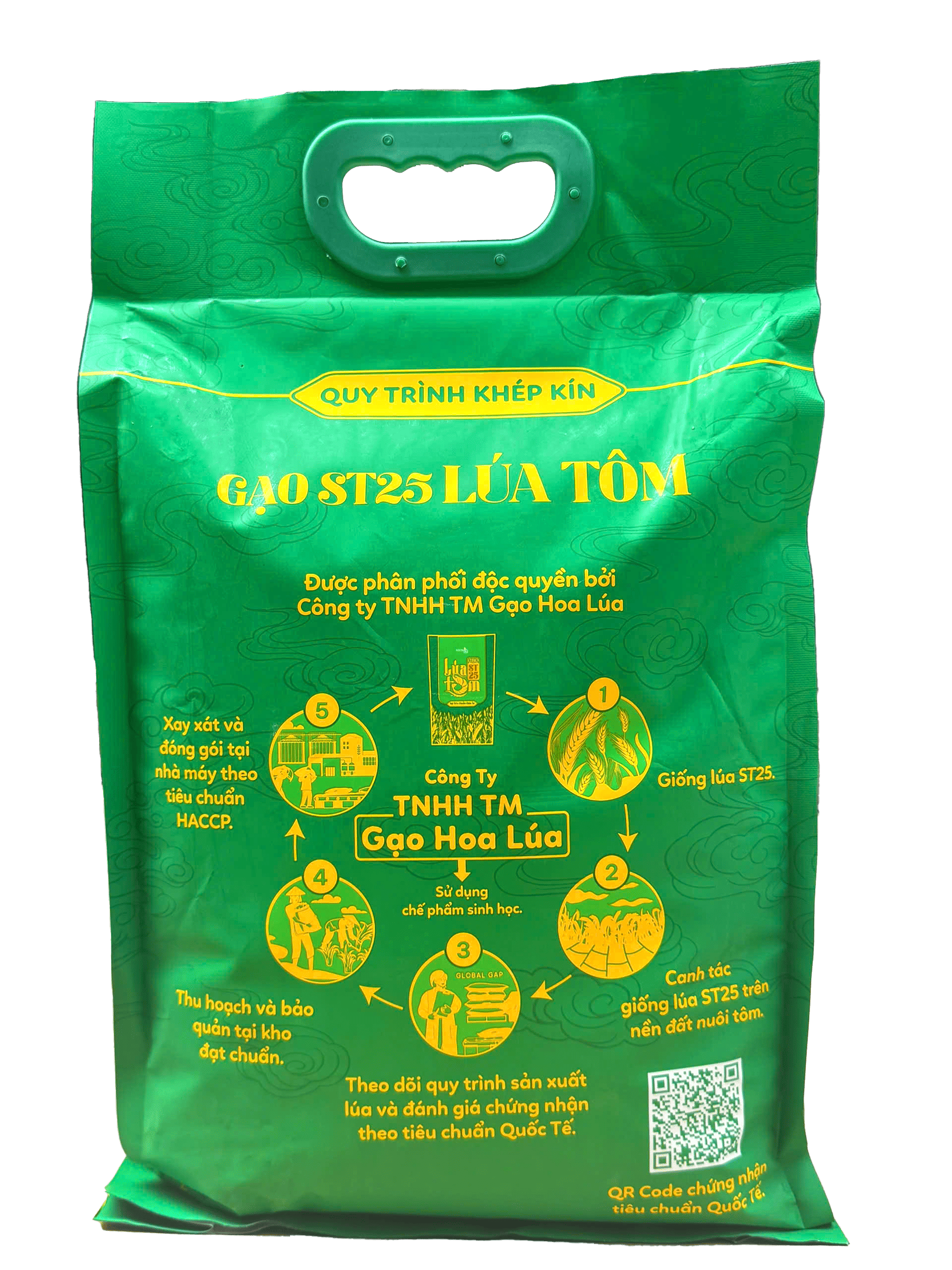Dòng gạo được trồng trên cánh đồng ST25 ở Đồng Tháp, đảm bảo chuẩn VietGAP, 1 năm 3 vụ Cơm dẻo, thơm. Đặc điểm: + Gạo có chất lượng, mùi vị vượt trội so với