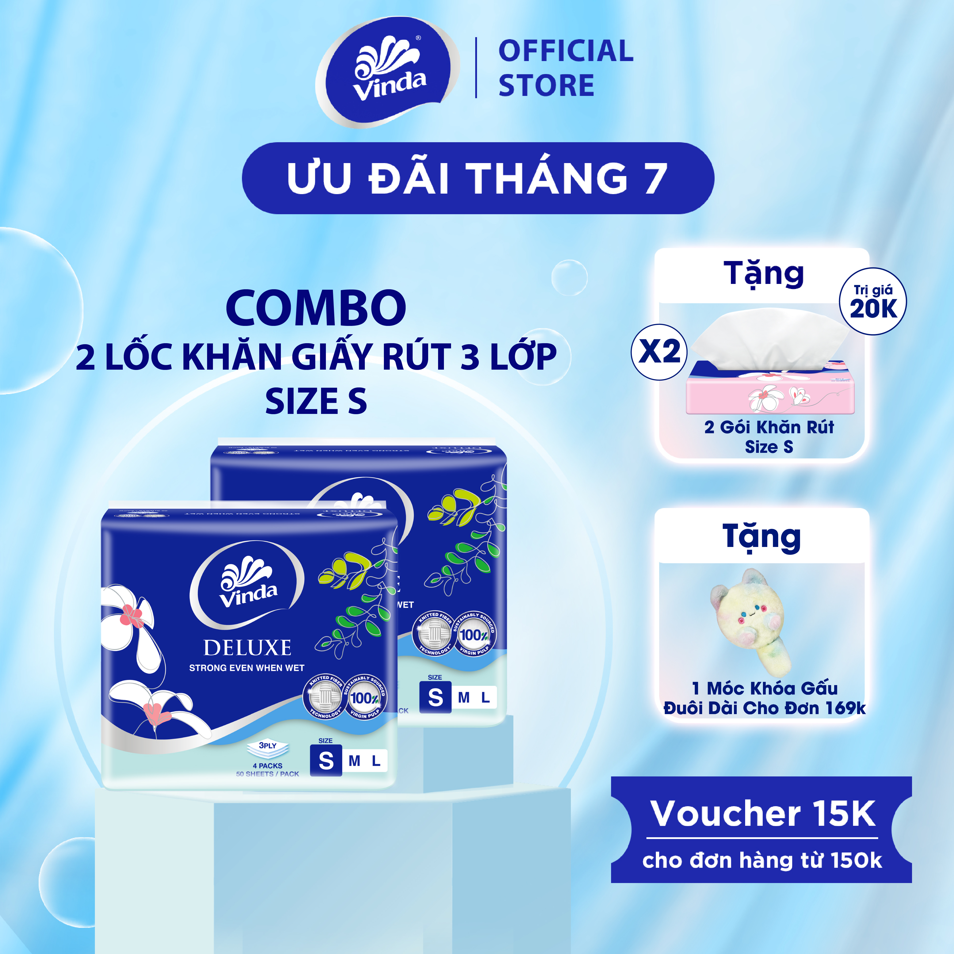 Khăn giấy rút cao cấp Vinda Deluxe Size S