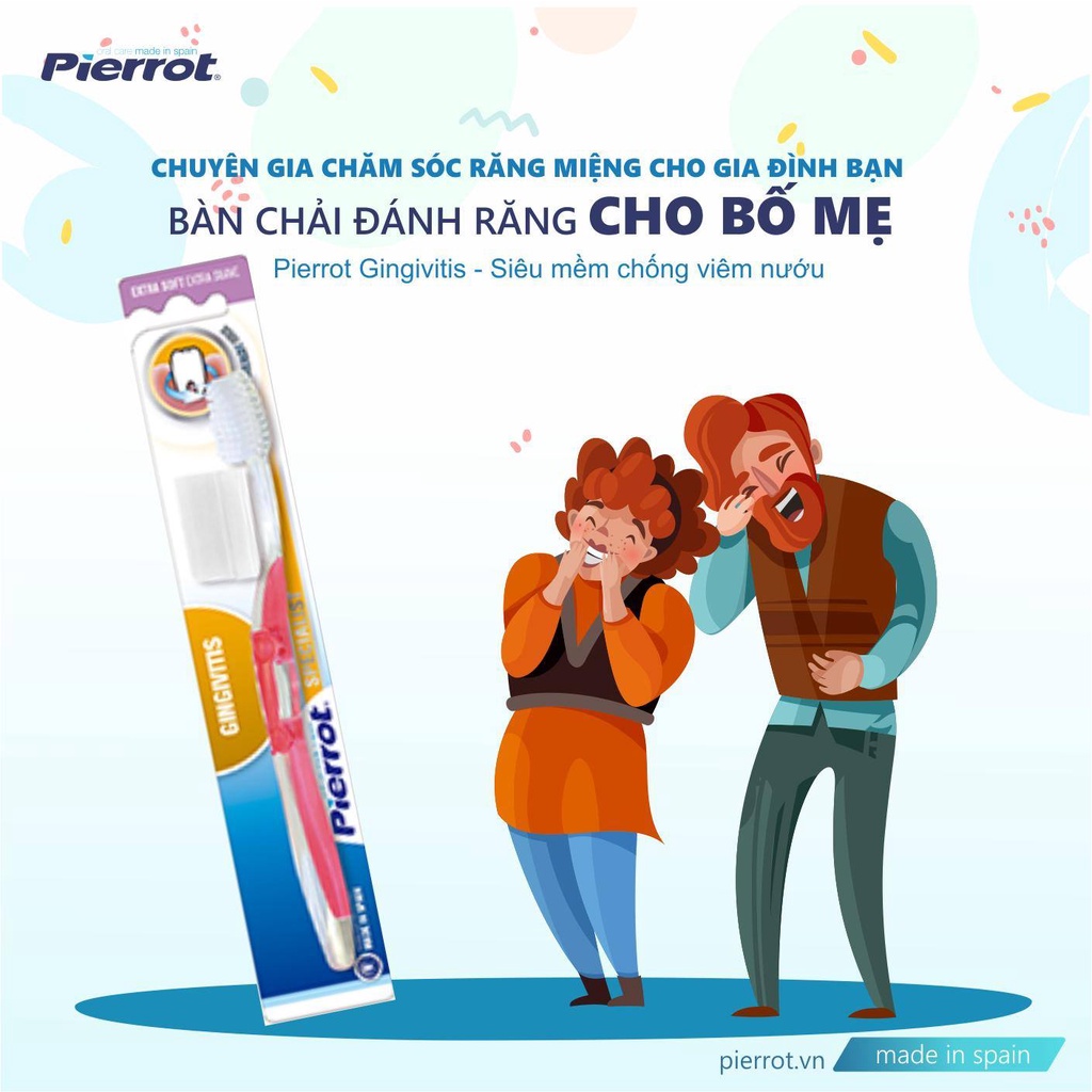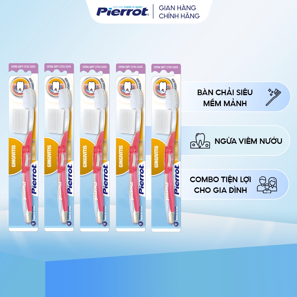 Ưu điểm của sản phẩm: - Bàn chải đánh răng siêu mềm chống viêm nướu PIERROT GINGIVITIS giúp chải sạch răng và nướu một cách nhẹ nhàng nhờ cấu tạo lông bàn chải mềm mảnh.