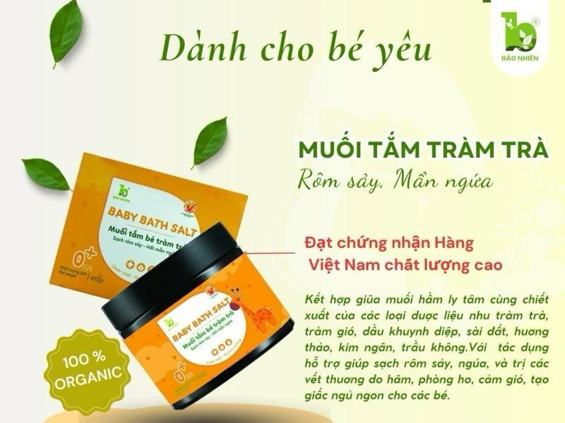 10 LÝ DO CÁC MOM NÊN DÙNG MUỐI TẮM BÉ TRÀM TRÀ BẢO NHIÊN Làm sạch rôm sẩy, mụn kê, chàm sữa Dịu mẩn ngứa, vết côn trùng cắn và hăm tã Tinh dầu chứa