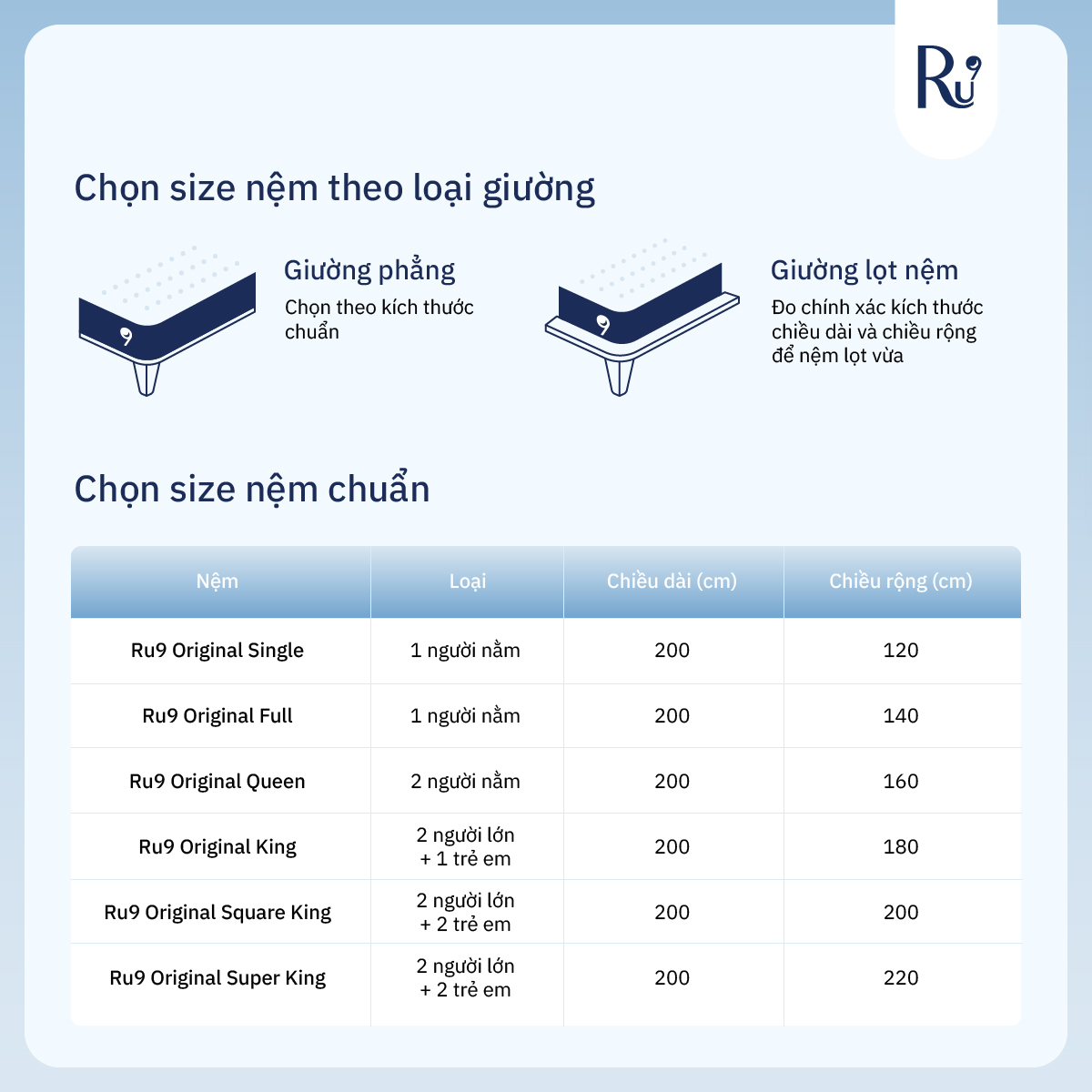 Nệm Foam Cao Cấp Ru9 Original 25cm - Trắng Xanh | 3 Lớp Foam Nâng Đỡ Cơ Thể | Bao Gồm 6 Kích Thước KHÔNG ÁP DỤNG 100 ĐÊM NGỦ THỬ ---------------------------------------------------- *Chi tiết