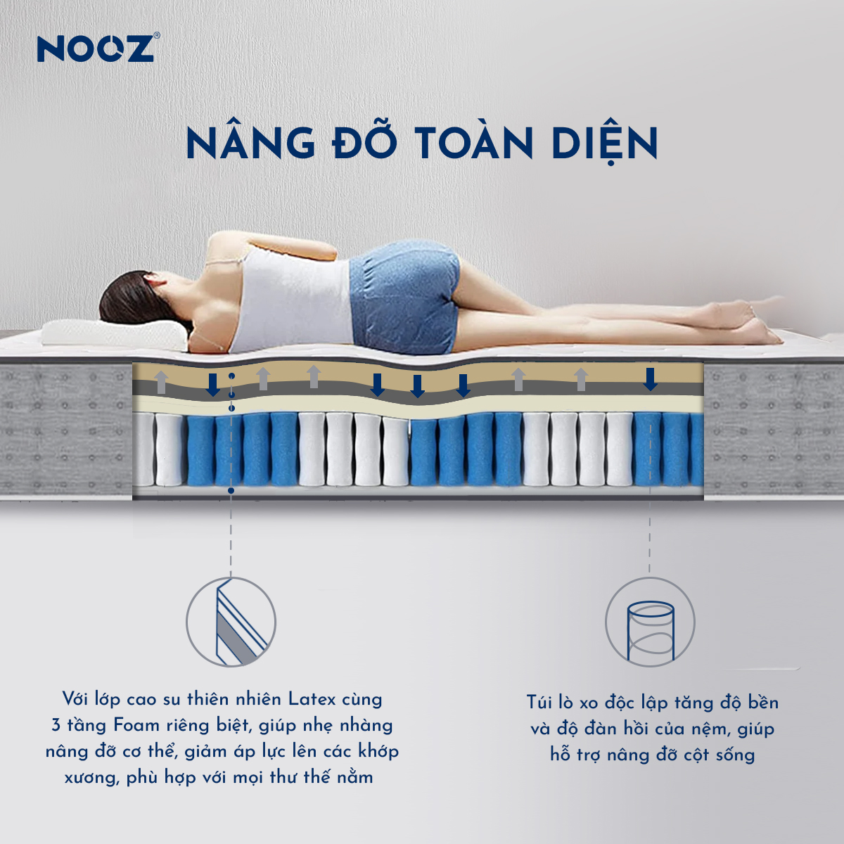 ✨Nệm Foam Hybrid Latex NOOZ Home Goods Mattress Đệm Với Tầng Lò Xo Túi Và Lớp Cao Su Non Thiên Nhiên