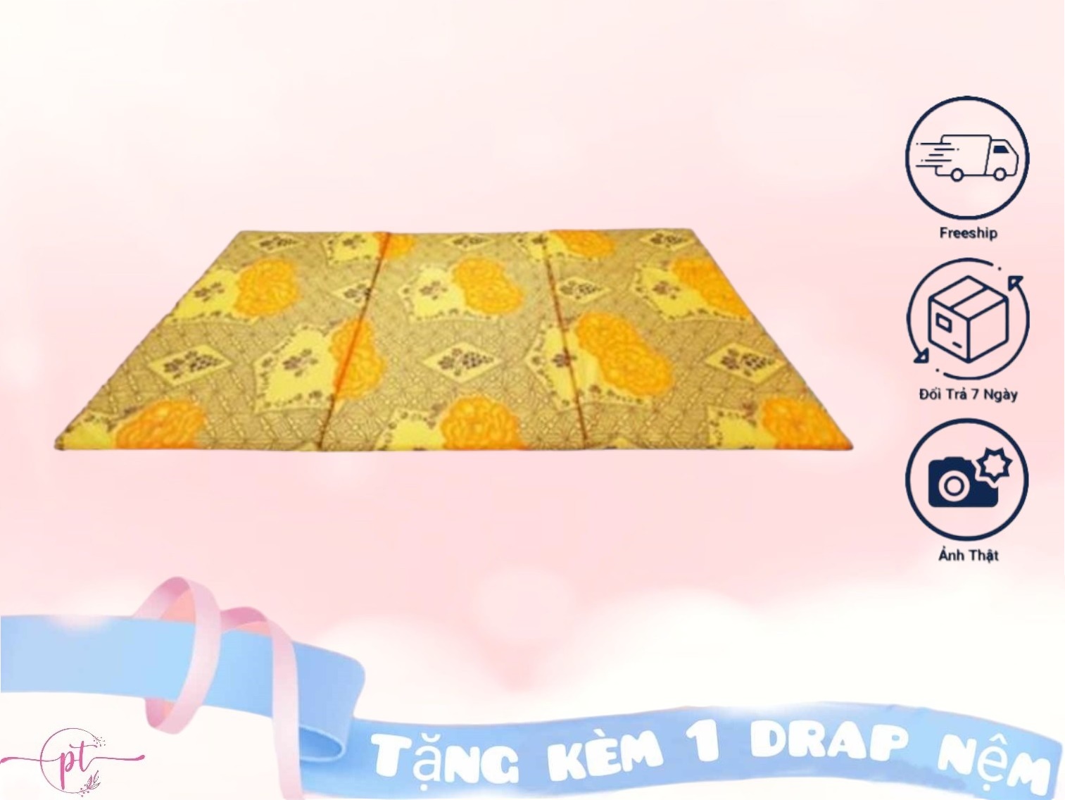 ✨Nệm PE Hàn Quốc Cao Cấp Gấp 3 ( 1m4 x 1m95 x 3cm) Giao Màu Ngẫu Nhiên - Tặng Kèm Cặp Áo Gối
