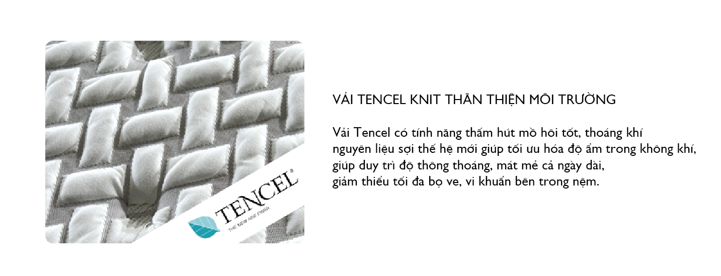 Chất liệu lõi nệm: Cao su trà xanh kết hợp HR Foam cao cấp Vỏ áo nệm: Vải gấm lạnh ứng dụng công nghệ làm mát Aircool -5 độ C Màu sắc: Xanh - Trắng
