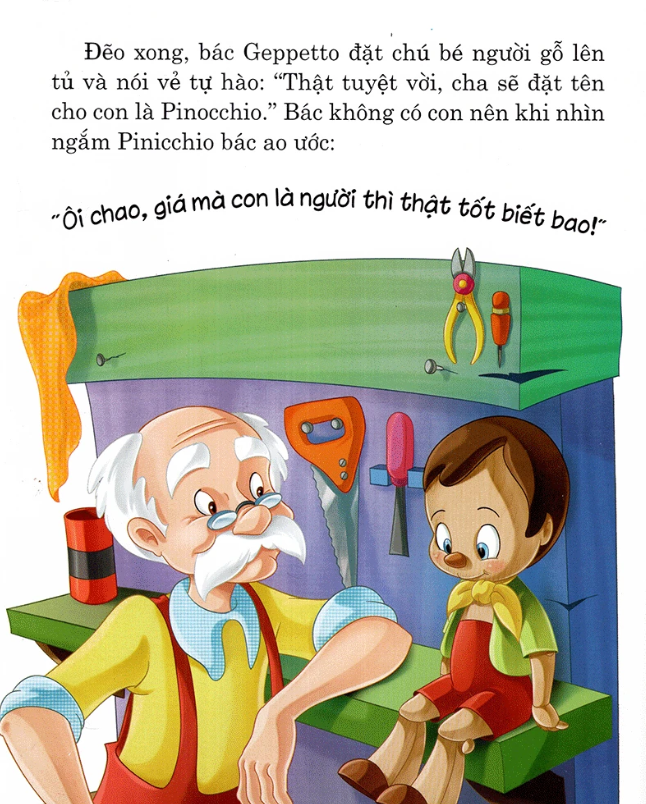 Ngày Xửa Ngày Xưa - Pinocchio Giới thiệu sách Bộ truyện “Cổ tích Ngày xửa ngày xưa” tái hiện những câu chuyện cổ tích truyền thống với hình vẽ đặc sắc và sống động. Cuốn sách không chỉ khắc họa những nàng công chúa, chàng hoàng tử của thế hệ mới một cách vui tươi và mạnh mẽ hơn, mà còn kết hợp giữa việc kể chuyện và các trò chơi tương tác, giúp trẻ nhỏ học hỏi và giải trí đồng thời. Đối tượng sử dụng