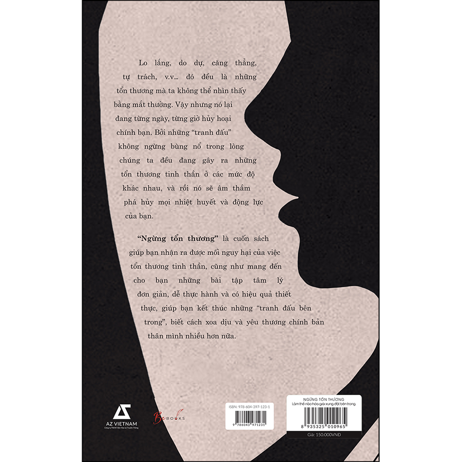 NGỪNG TỔN THƯƠNG - LÀM THẾ NÀO HÓA GIẢI XUNG ĐỘT BÊN TRONG Cuốn sách dành cho những trái tim đầy vết xước đang tìm kiếm cách kết thúc những “tranh đấu bên trong” và yêu thương bản thân hơn. Bạn thân mến, bạn có biết rằng: