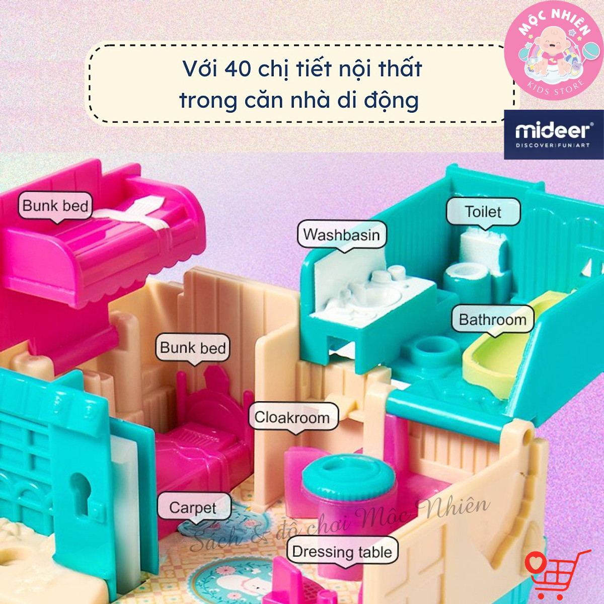 - Thiết kế nhỏ gọn bé có thể mang đi du lịch với gia đình hay đi chơi với các bạn vô cùng thiện lợi Mô Hình Nhà Búp Bê Magic Doll House Mideer có 4 chủ đề: