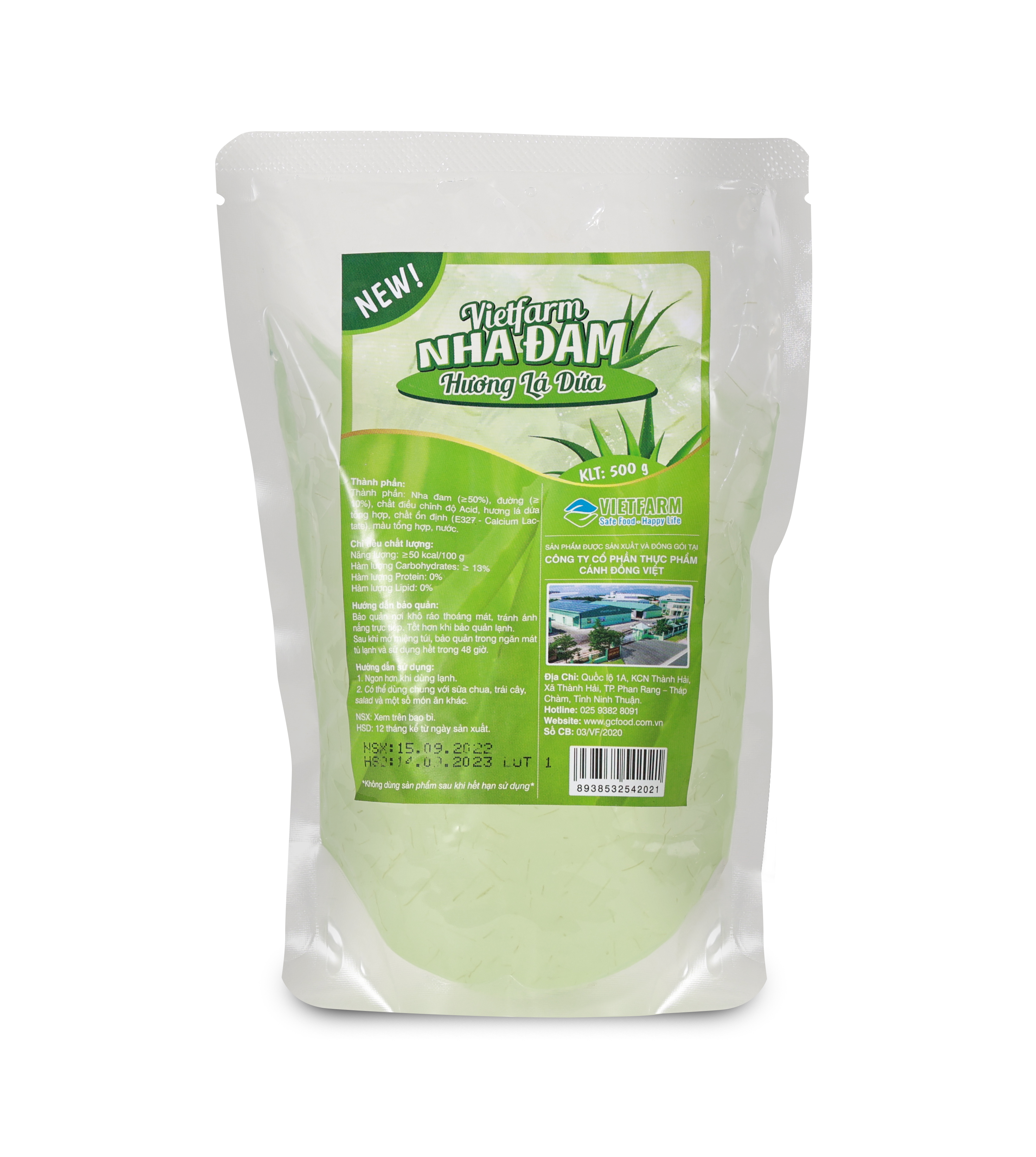 Thạch nha đam Vietfarm được sản xuất bởi Công ty CP Thực phẩm Cánh Đồng Việt, Cty sản xuất nha đam lớn nhất Việt Nam hiện nay. Quy trình sản xuất khép kín, đảm bảo chất lượng sản phẩm. Thạch dạng hạt, vừa uống vừa nhai, dai dai vui miệng Nha đam Vietfarm với thiết kế túi đứng tiện dụng, không chất bảo quản, nhiều hương vị để lựa chọn. CÔNG DỤNG Lợi ích của nha đam (lô hội) đã được các nhà nghiên cứu và bác sĩ công nhận đối với tình trạng sức khỏe người dùng:
