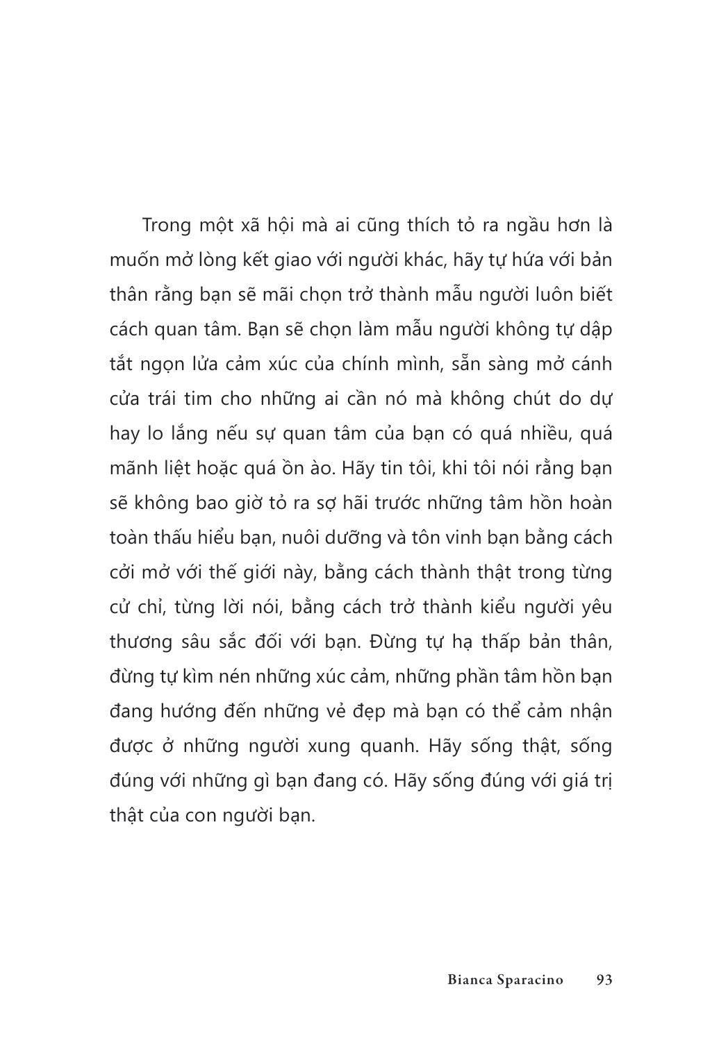 Bianca Sparacinolà nhà văn thích kiếm tìm cảm hứng từ tình yêu, niềm vui và cả sự hối tiếc. Bianca tái hiện cuộc sống con người thành những suy tưởng đầy chất thơ nhưng vẫn vô cùng chân thực.