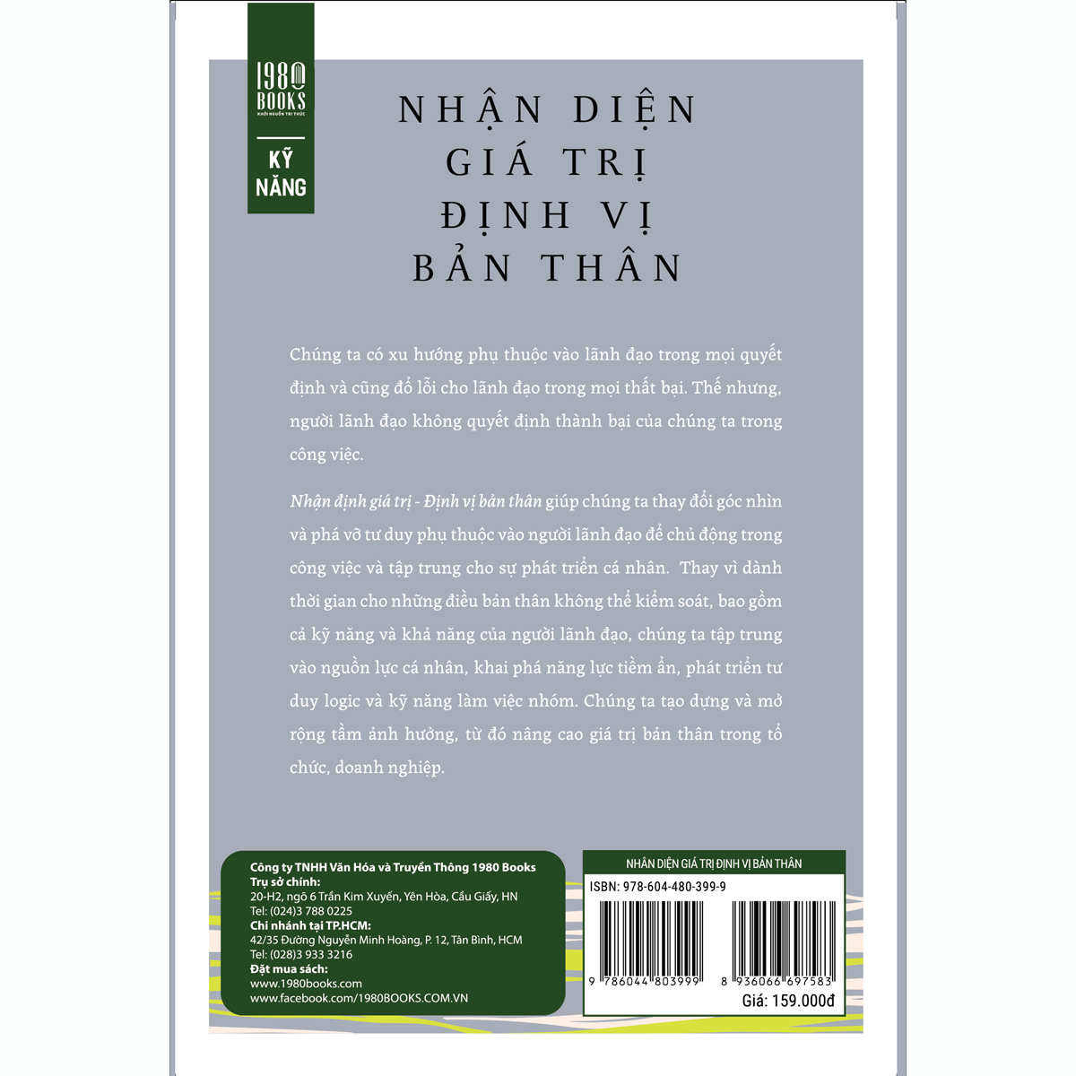 Cuốn sách « Nhận diện giá trị - Định vị bản thân » tiếp cận chủ đề lãnh đạo theo một cách hoàn toàn khác. Lãnh đạo không nằm ở vị trí mà ở vị thế và thái độ. Bạn không cần phải là Chủ tịch hoặc Trưởng phòng mới được gọi là người lãnh đạo và chứng minh khả năng lãnh đạo hiệu quả. Bạn có thể tạo ra tác động tích cực thông qua việc tự lãnh đạo bản thân dù bạn đang ở vị trí nào.