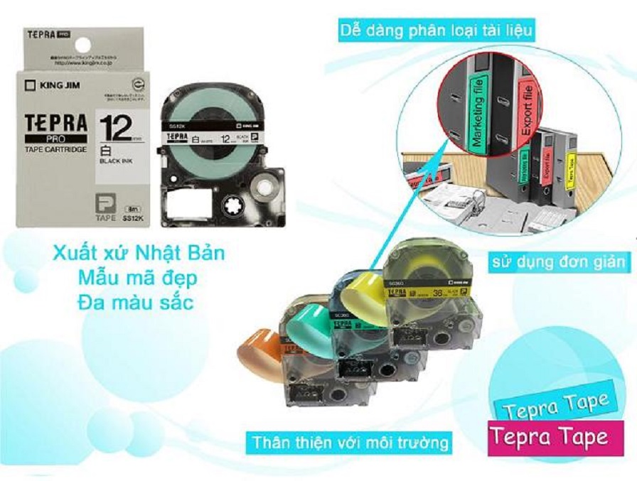 ✨Nhãn in Tepra SS18K (Chữ Đen Nền Trắng, Khổ 18mm) - Hàng chính hãng